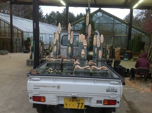 昨日初出荷しました。門松の材料のみも出荷しています。大阪からの毎年の注文です、全部で100対ほどの材料です。
