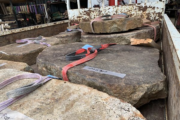 ★★今日は、古材の丹波鞍馬石の踏み込み石 奈良の河合町デビューします。