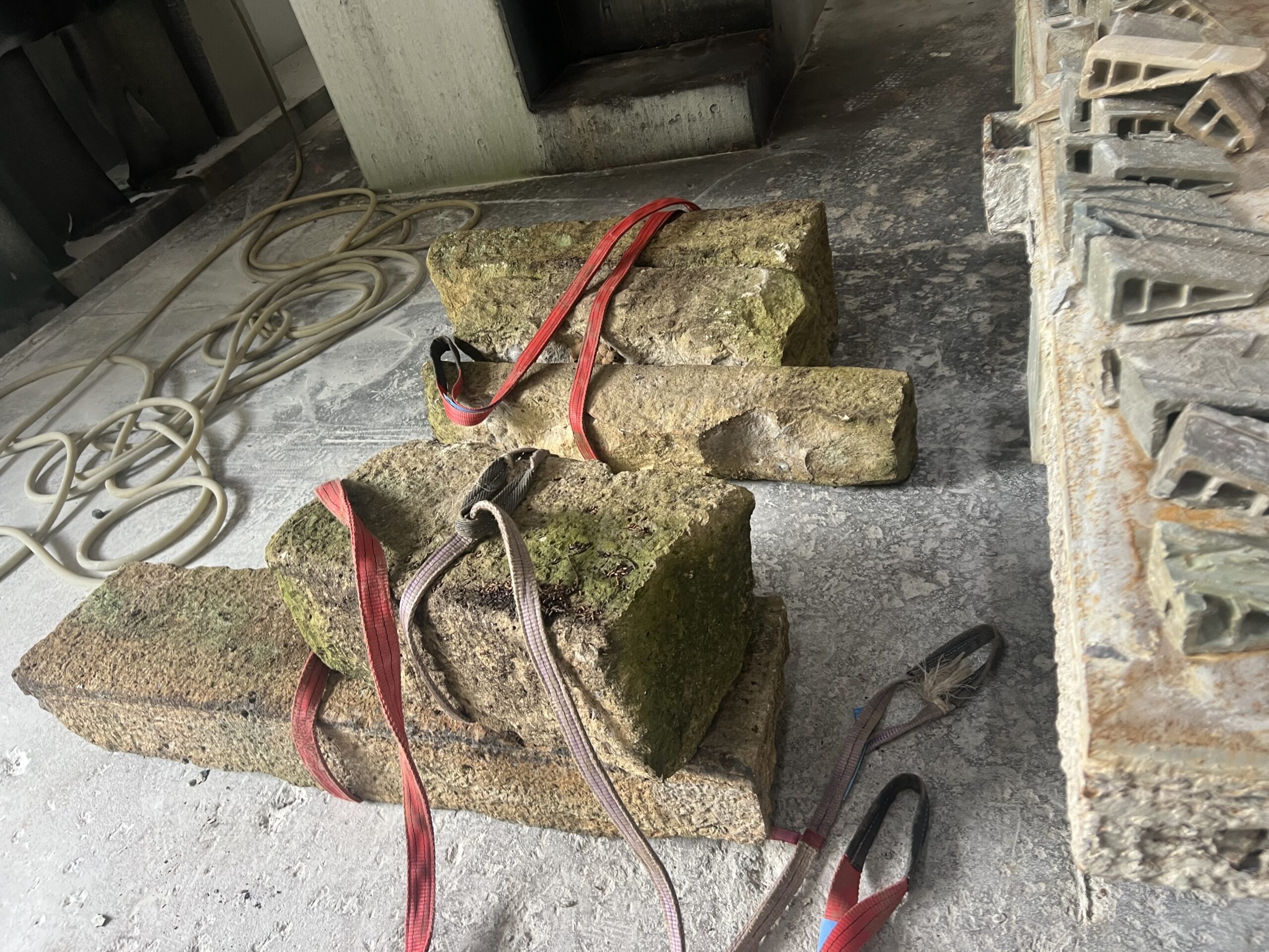 次の次の次に使う 古材の黄龍山石の加工を 石材工場に持ち込みました。