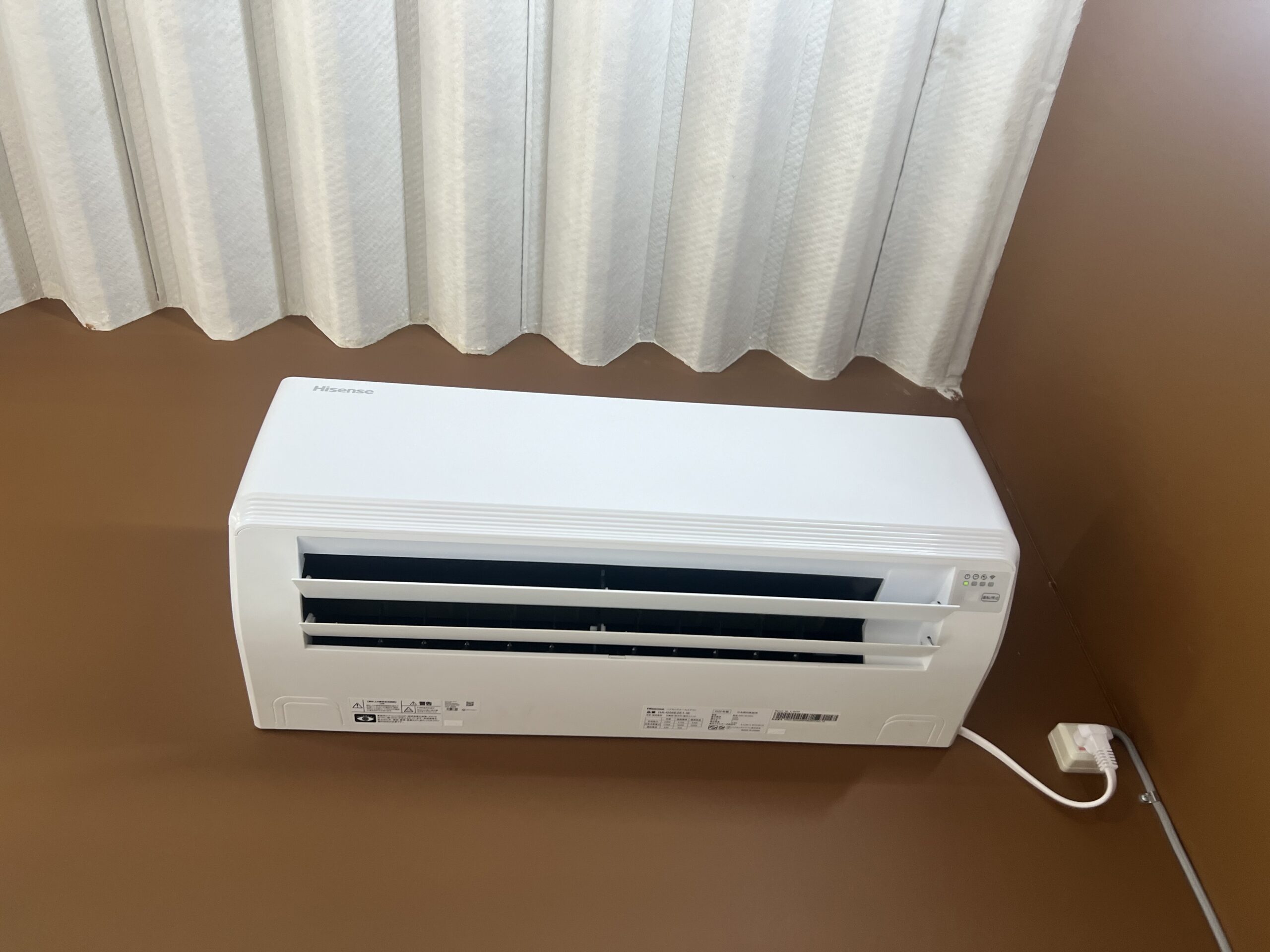 昨日 食堂にエアコン取付してもらいました。寒いくらいに冷えます。天井が高いため 200ボルトの22畳用にしました。