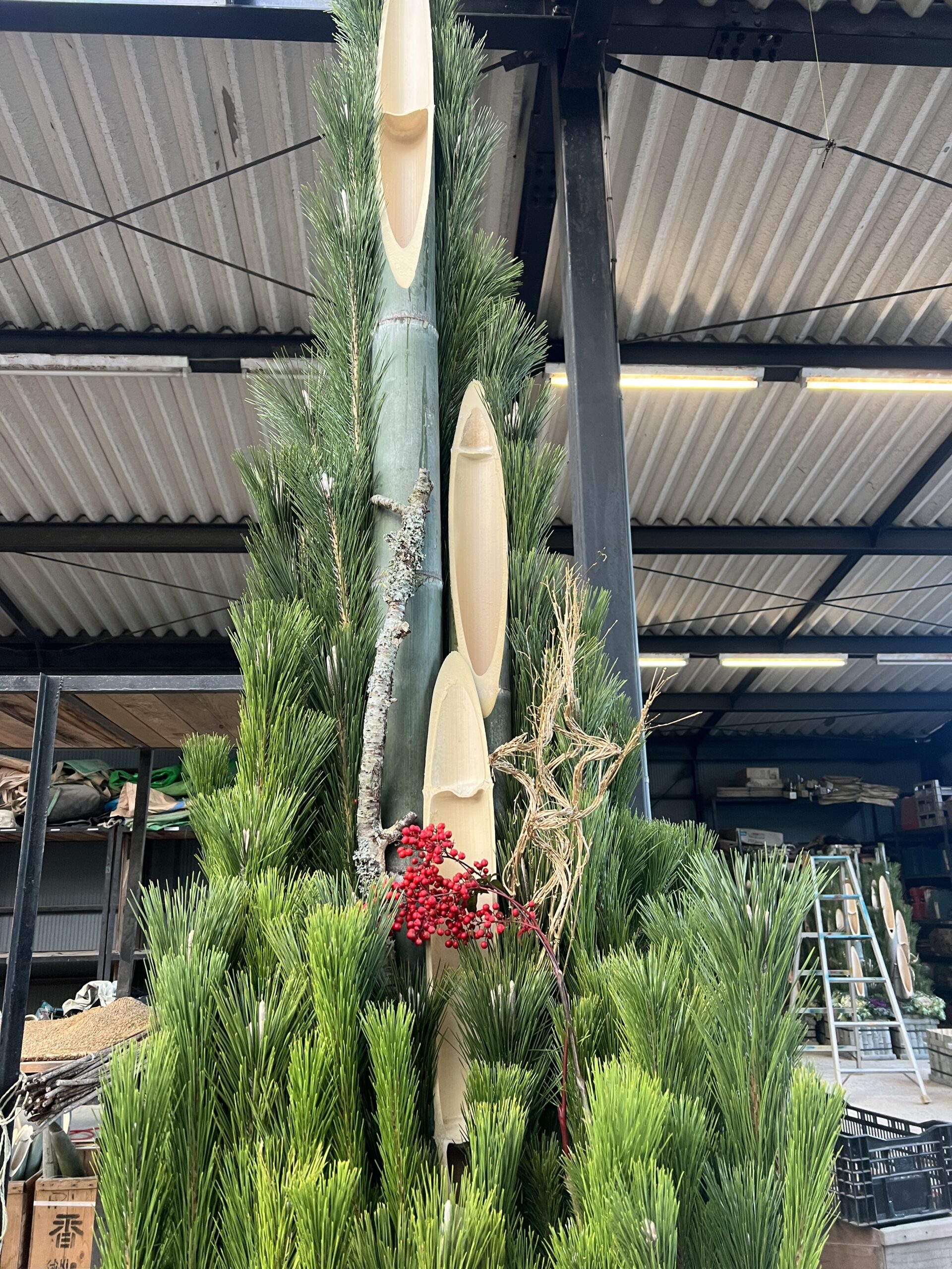 ★★12月は毎年 他の仕事を断って15人ほどで門松を作っていますが、今年は 庭工事がすでに何件か 入っていて 応援部隊頼んでいます。