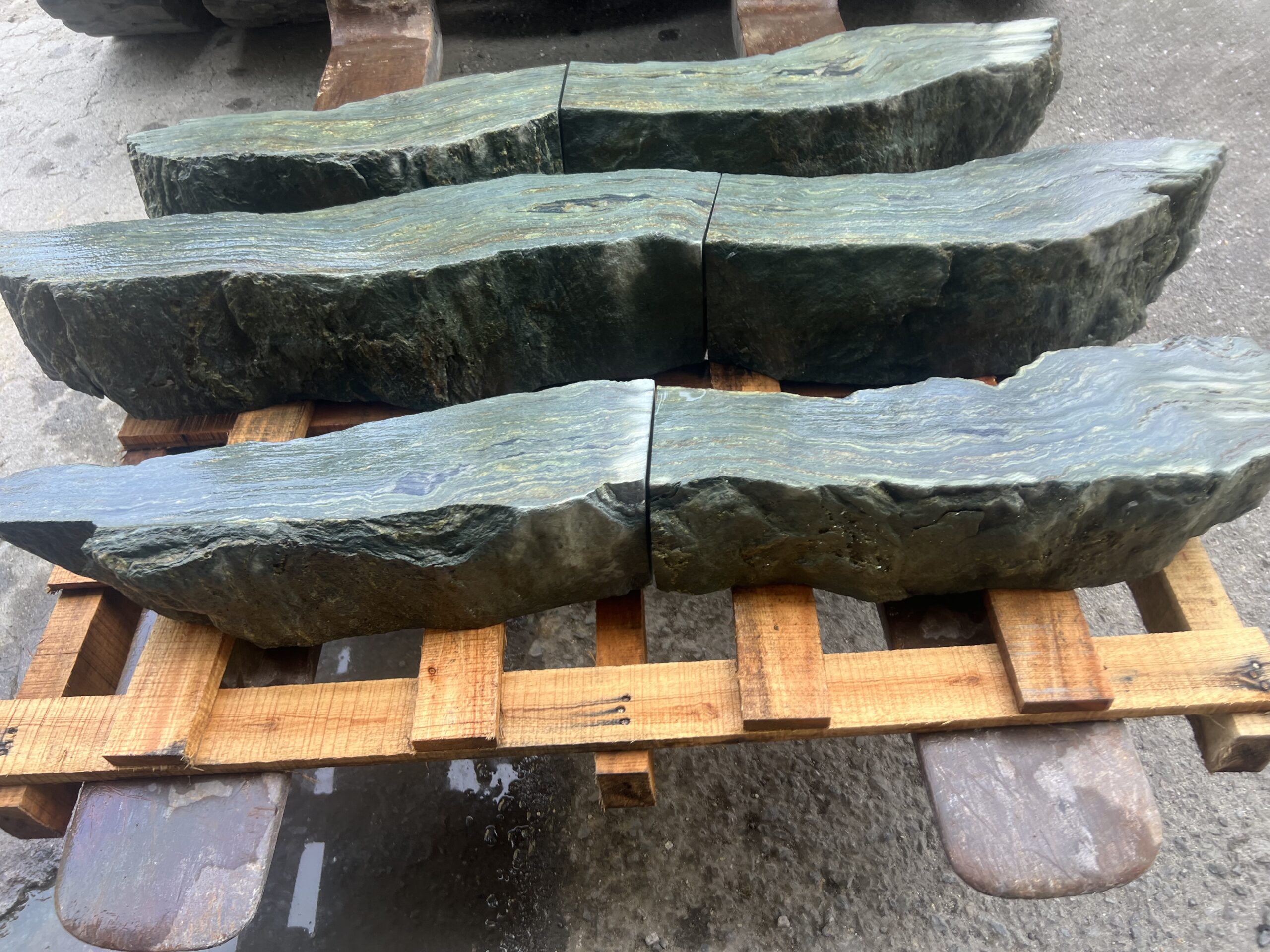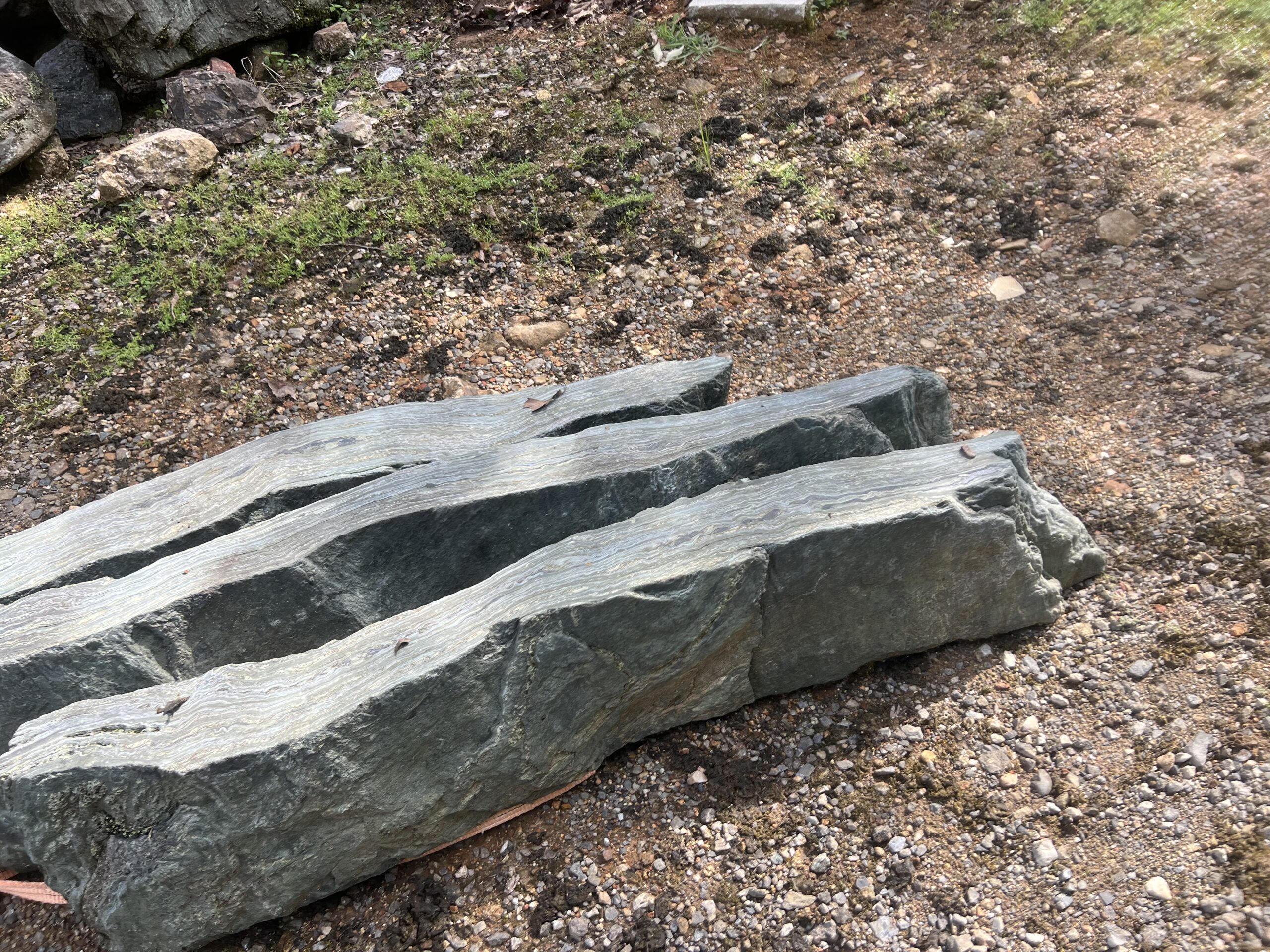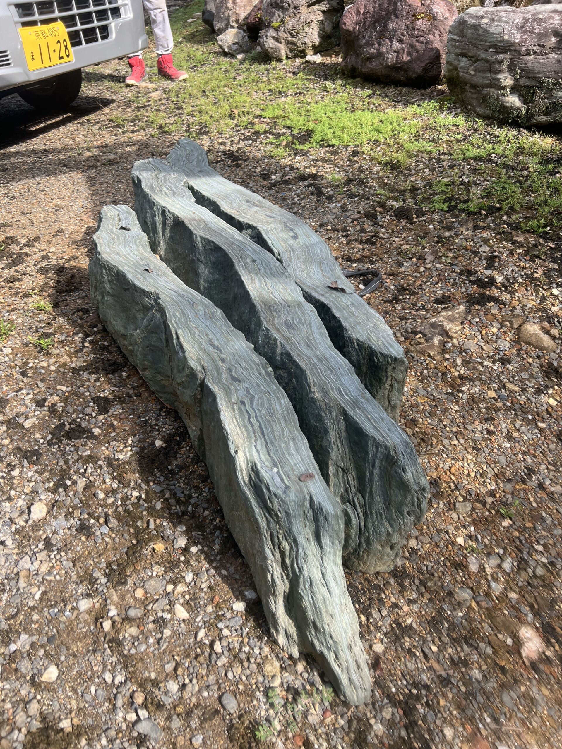 以前に手に入れた 立石を30cm幅に切削した伊予石 ビルの中の庭に使います。