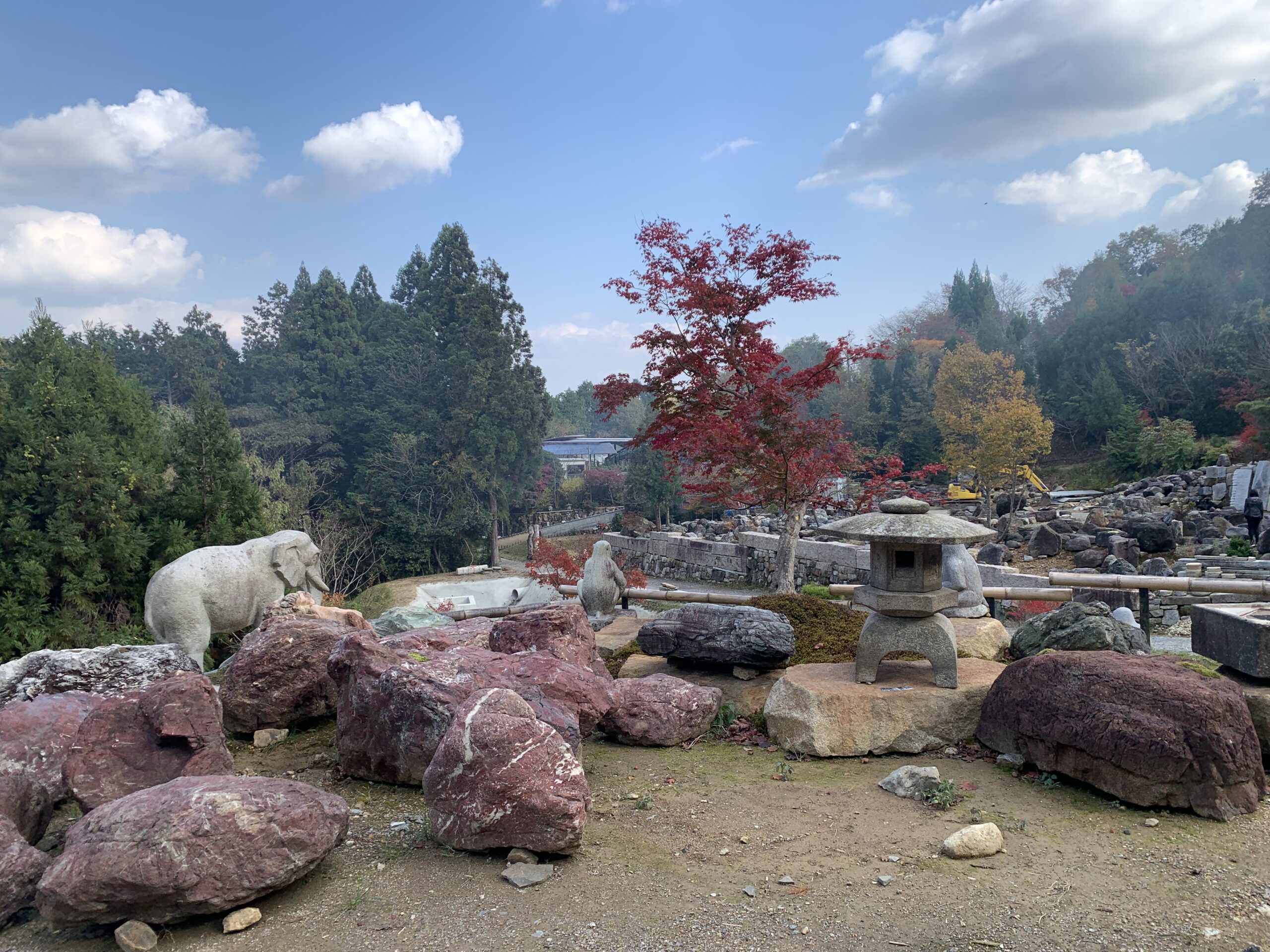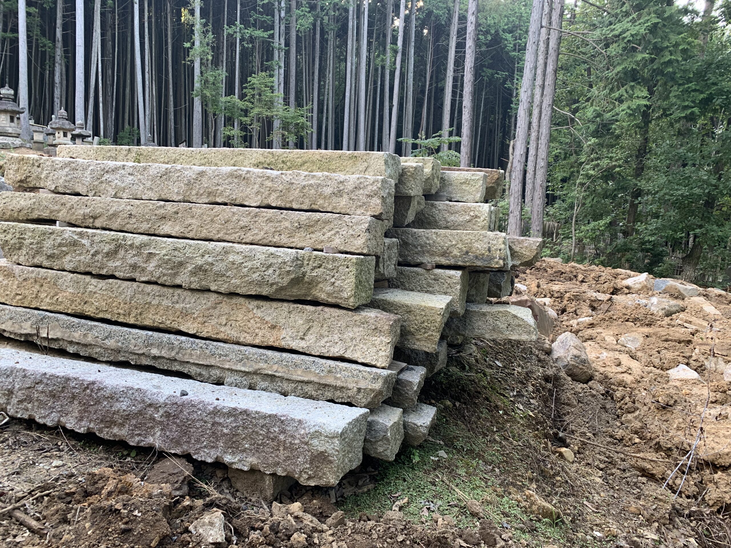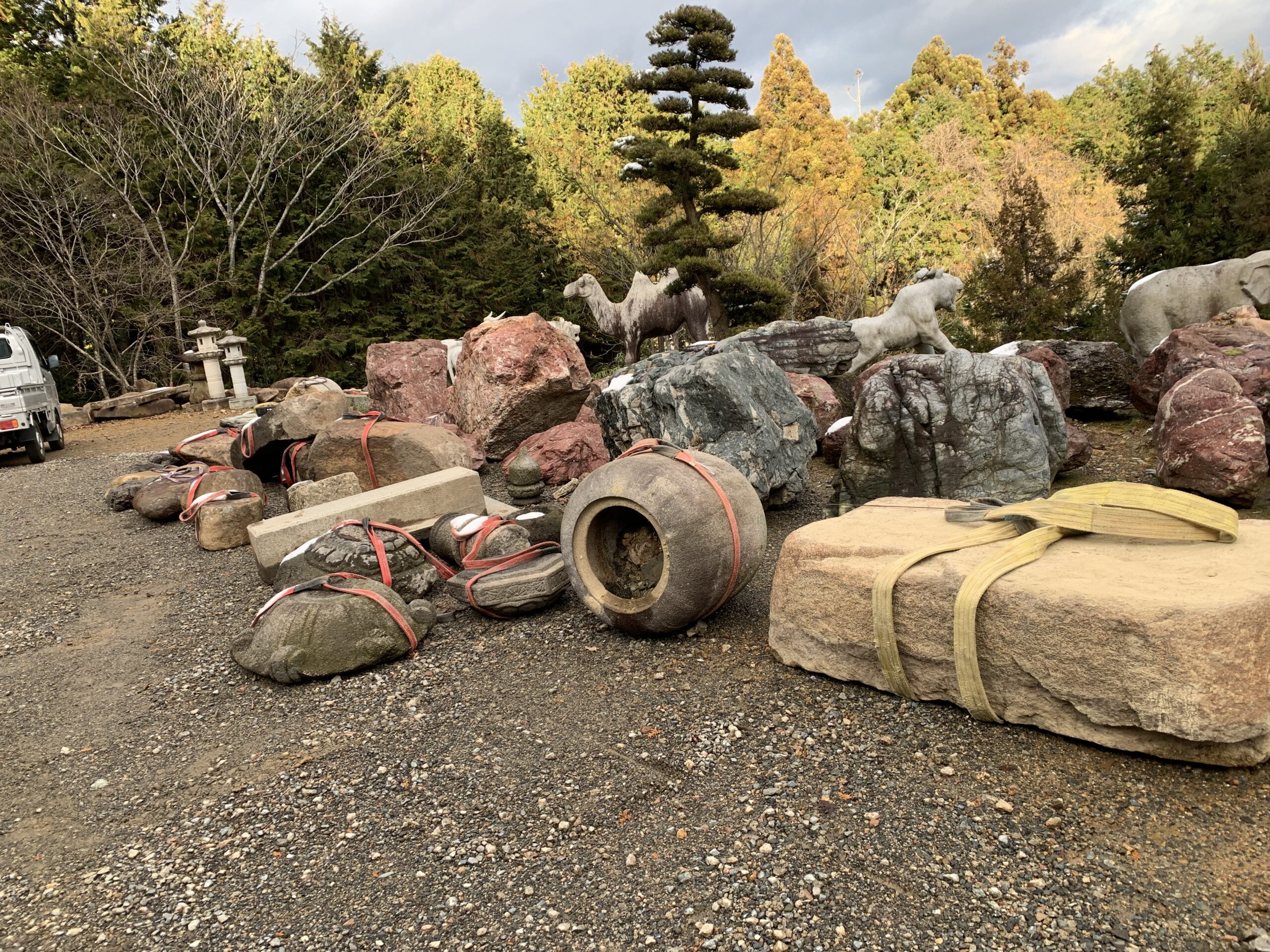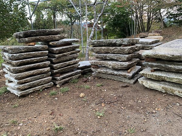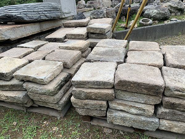 造園材料は 古材ですが、70000坪の展示場に平置きしています。