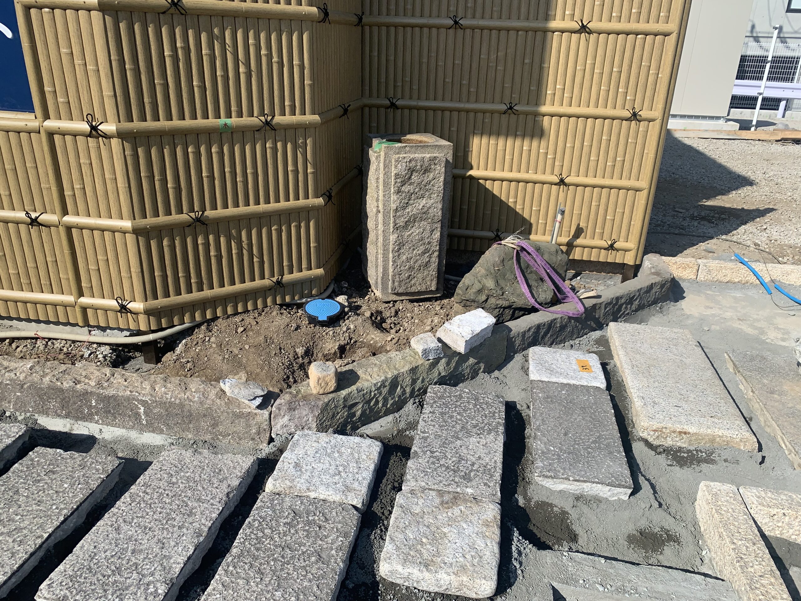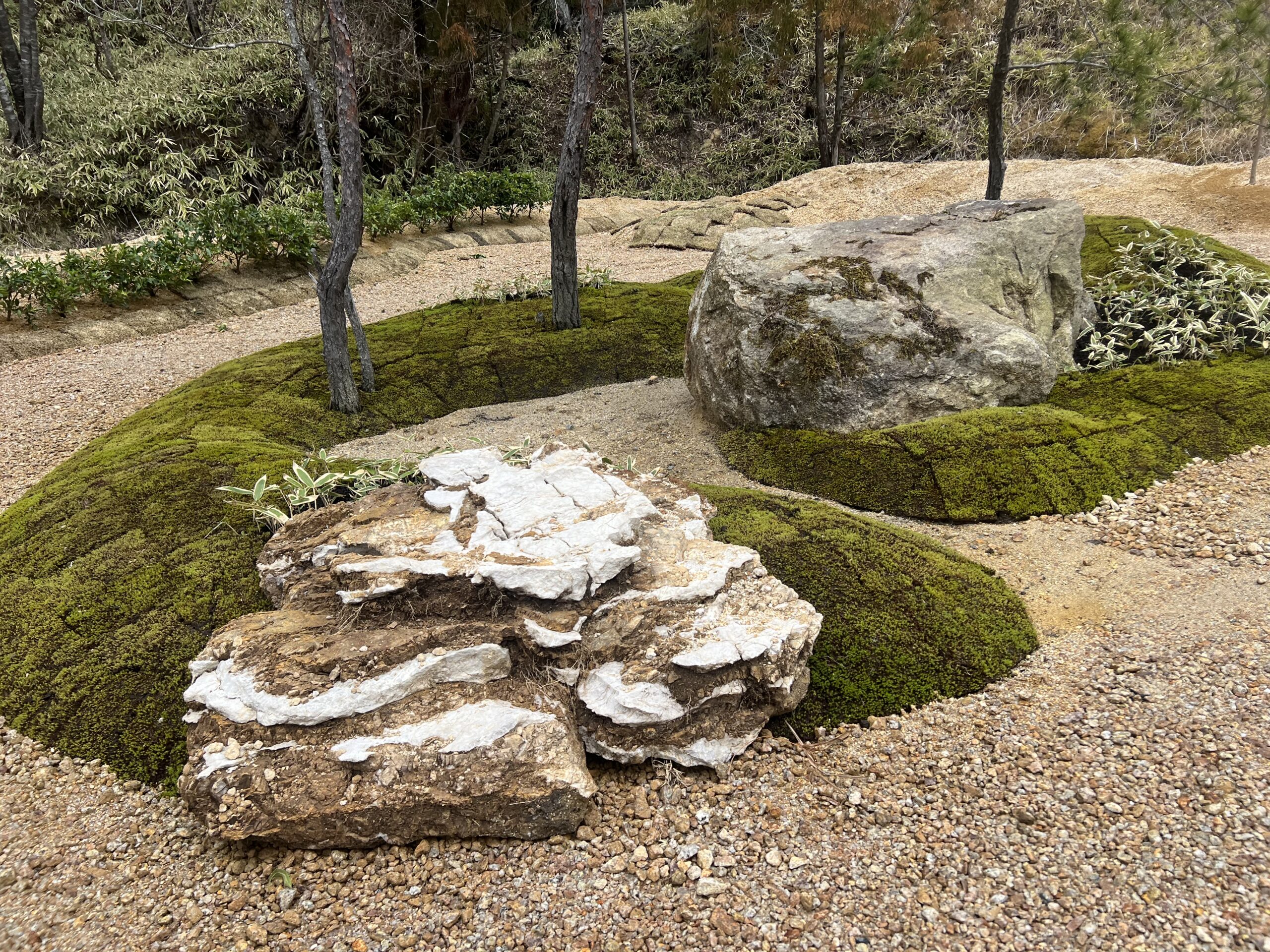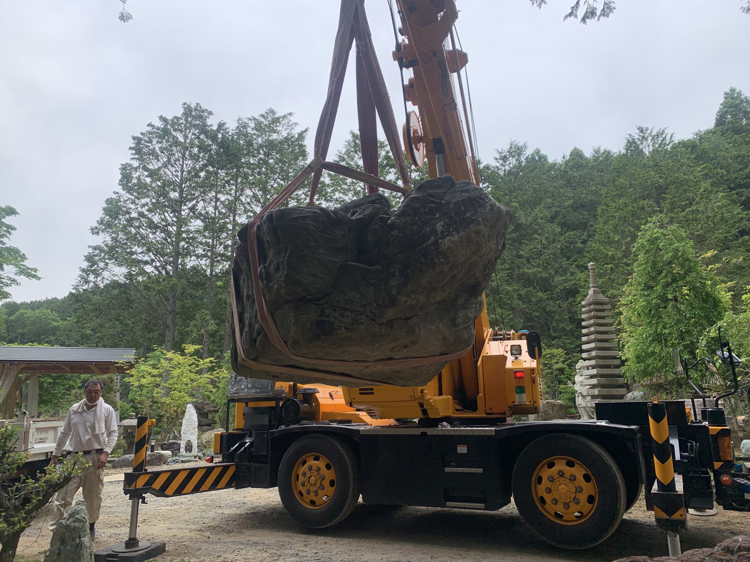 造園材料は 古材ですが、70000坪の展示場に平置きしています。