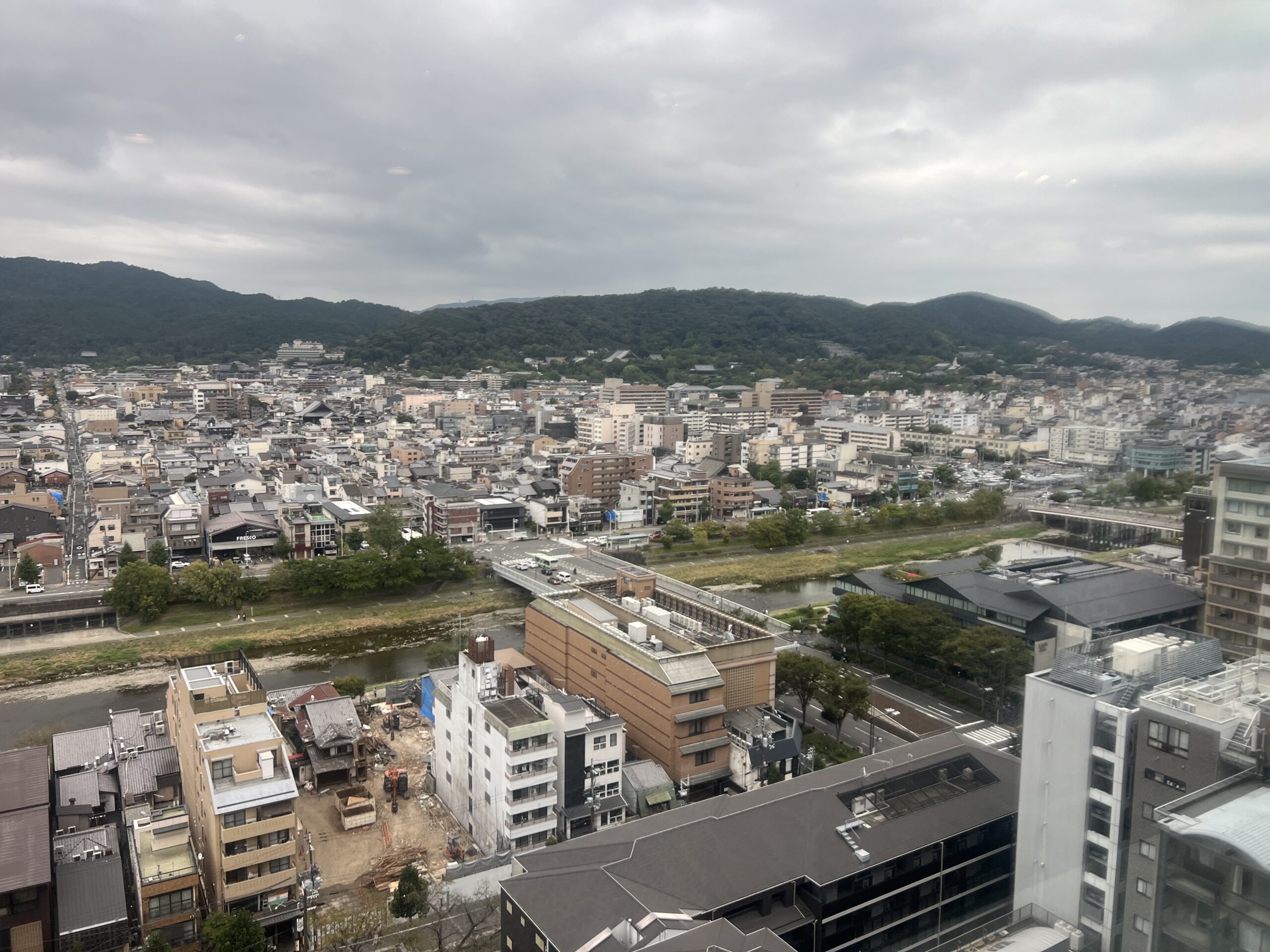 ホテルオークラの最上階から 東山36峰を見ながら 昔話で盛り上がってました。