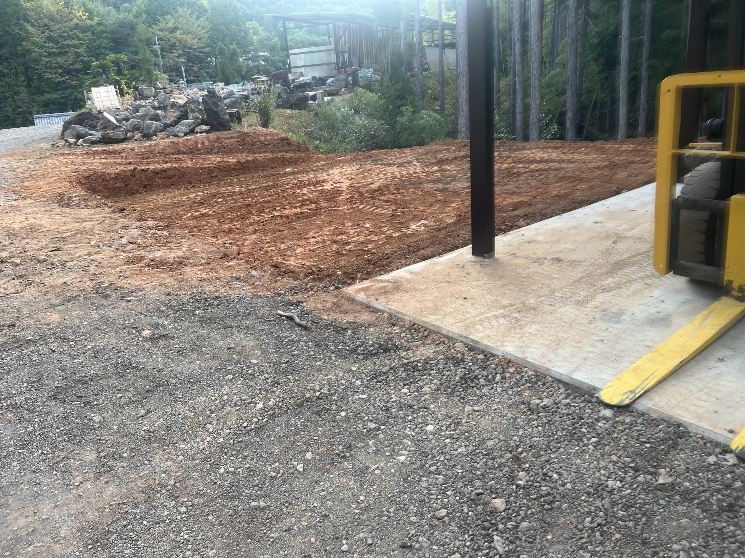 ★1台のカーポートに平置きで15パレットの出荷待ちの古材の坪庭材料が置けます。奥の倉庫に20パレット もう1台カーポートが出来ると50件分の材料がストックできます。西濃さんから出荷していますが、雨に濡れたバレットは 持ち込み出来ません?