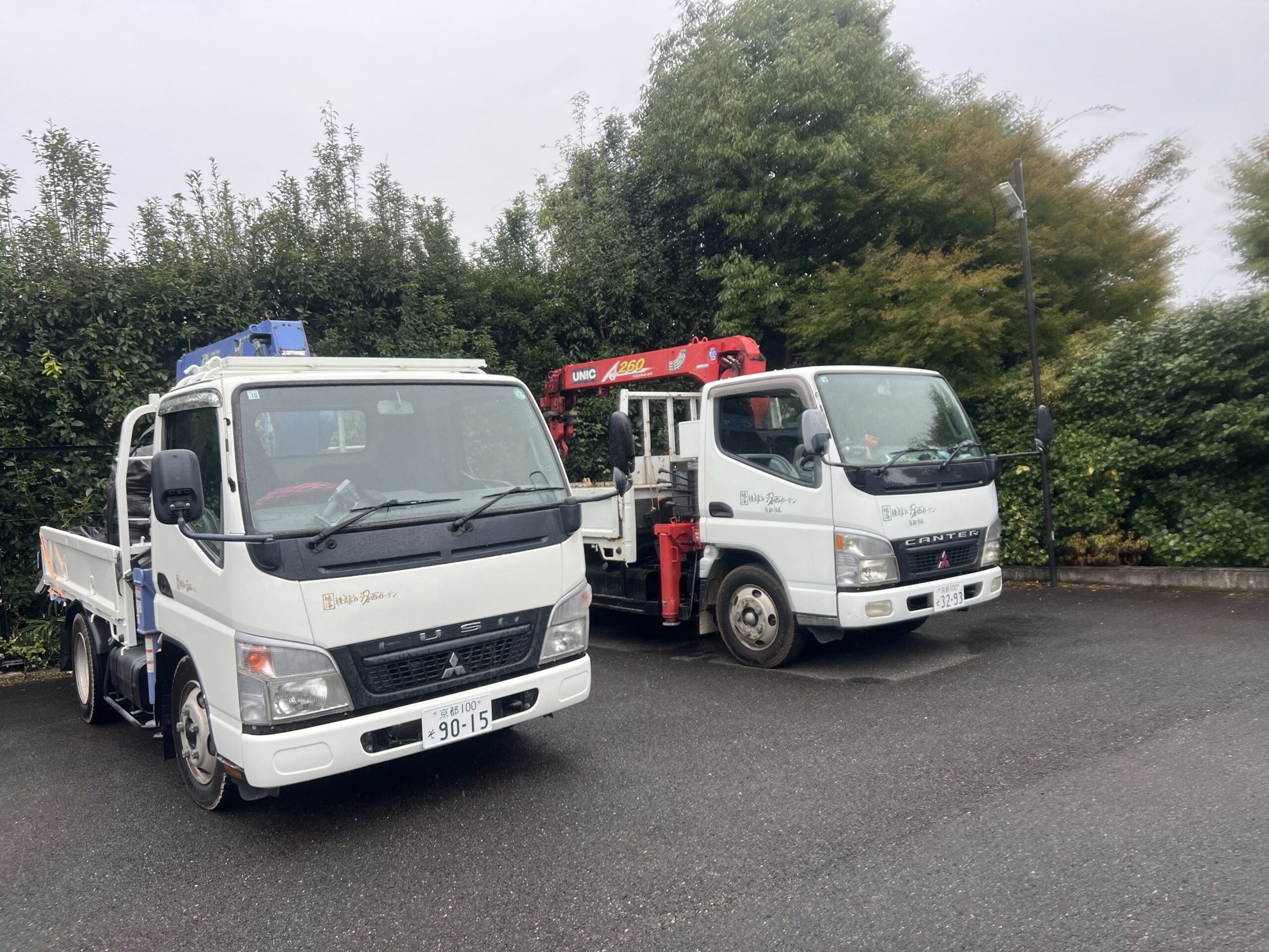 小さな レトロのトラック 2台 狭い道路の作業に便利です。東京に出張の際 このクラスのトラックしか コインパーク停められません。