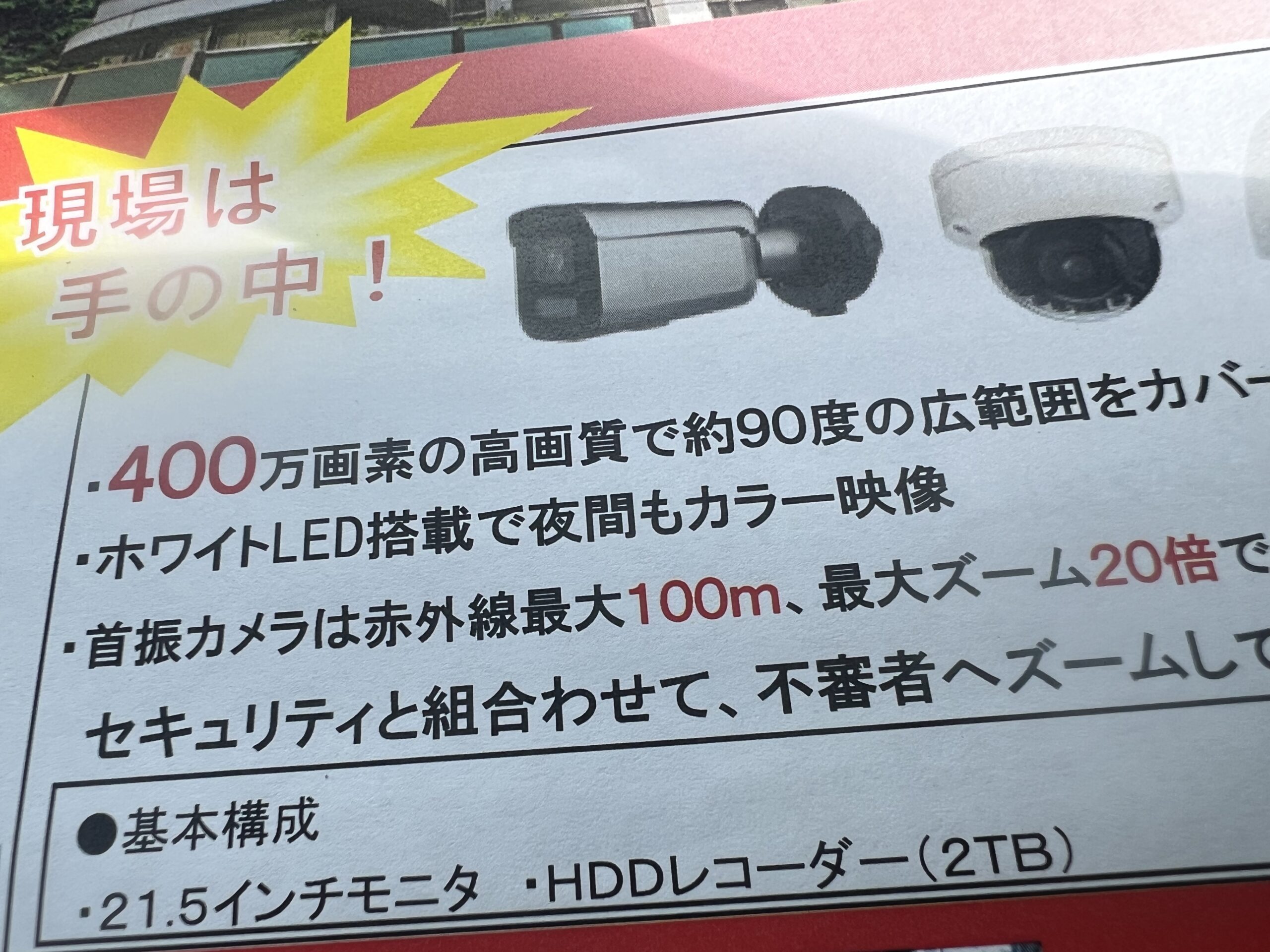 展示場に監視カメラを設置していますが、カメラが4台ありすべて録画されていますが、展示場が5カ所あり 4台のカメラでは 賄えず