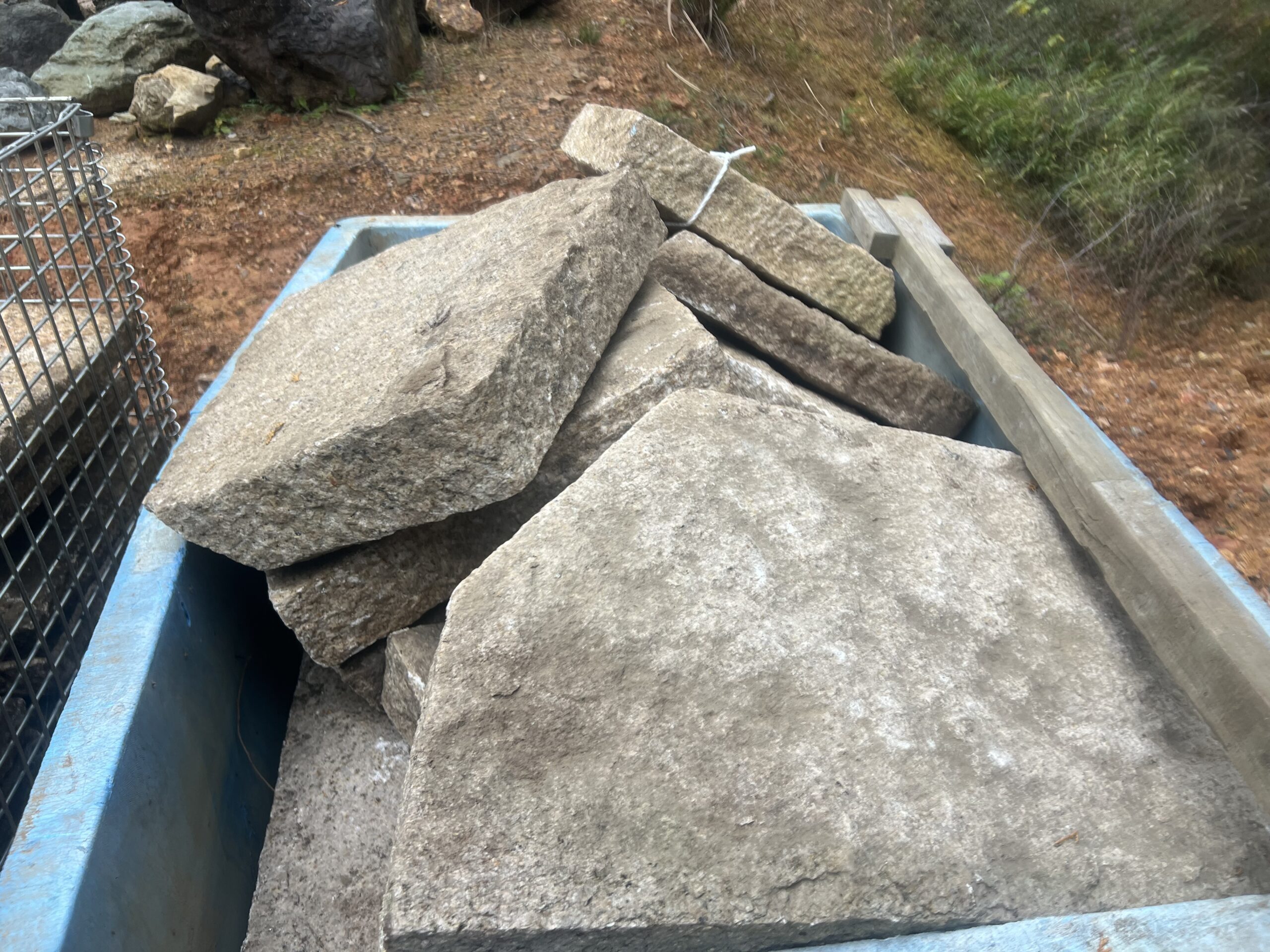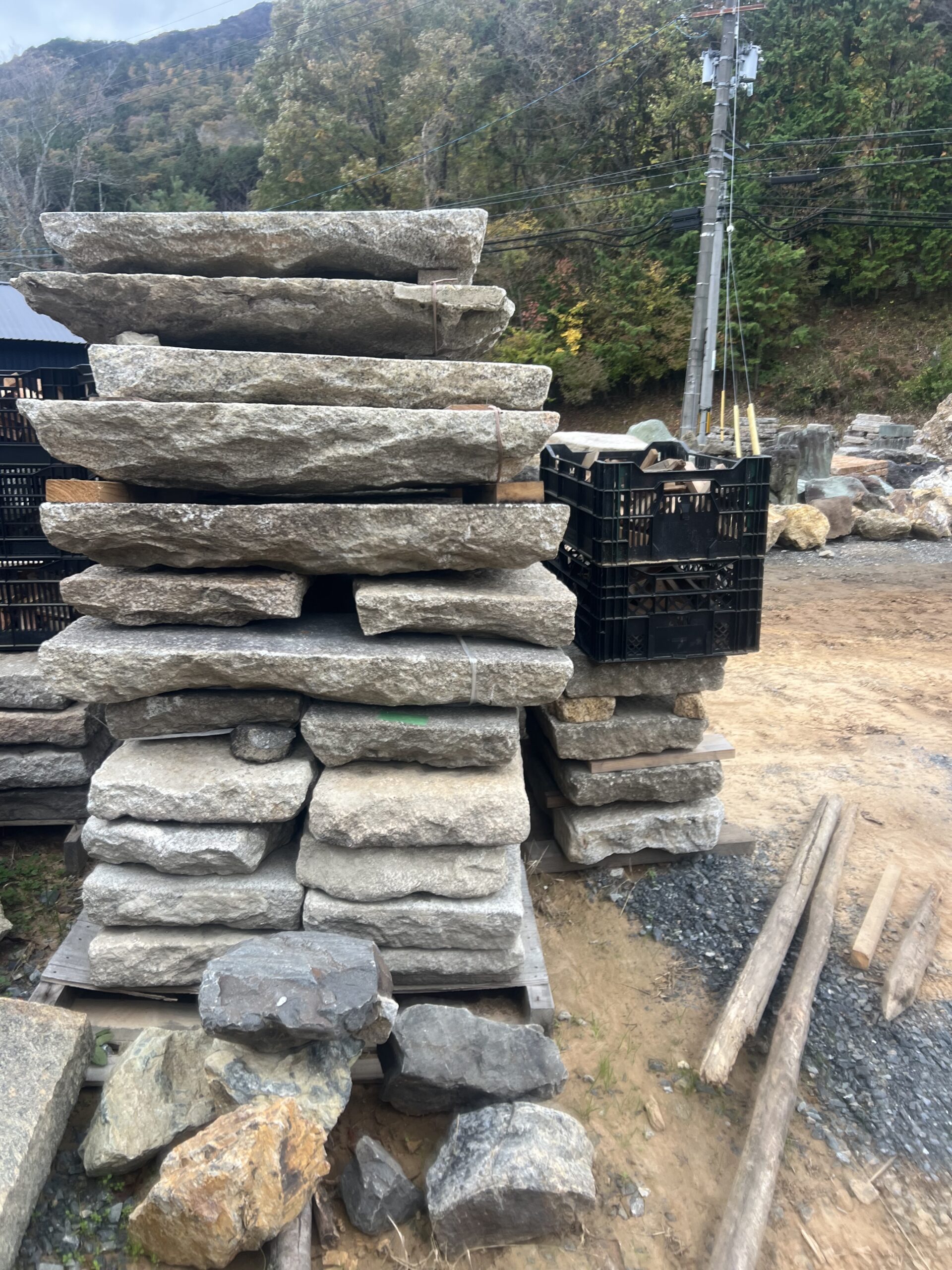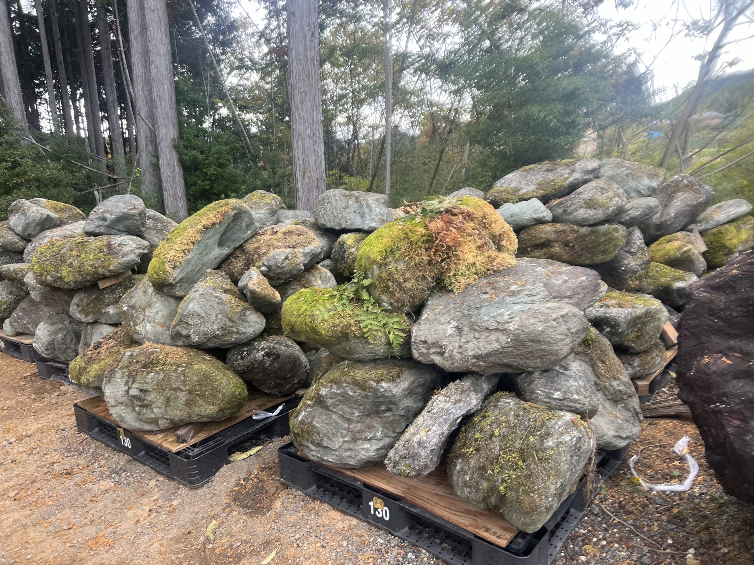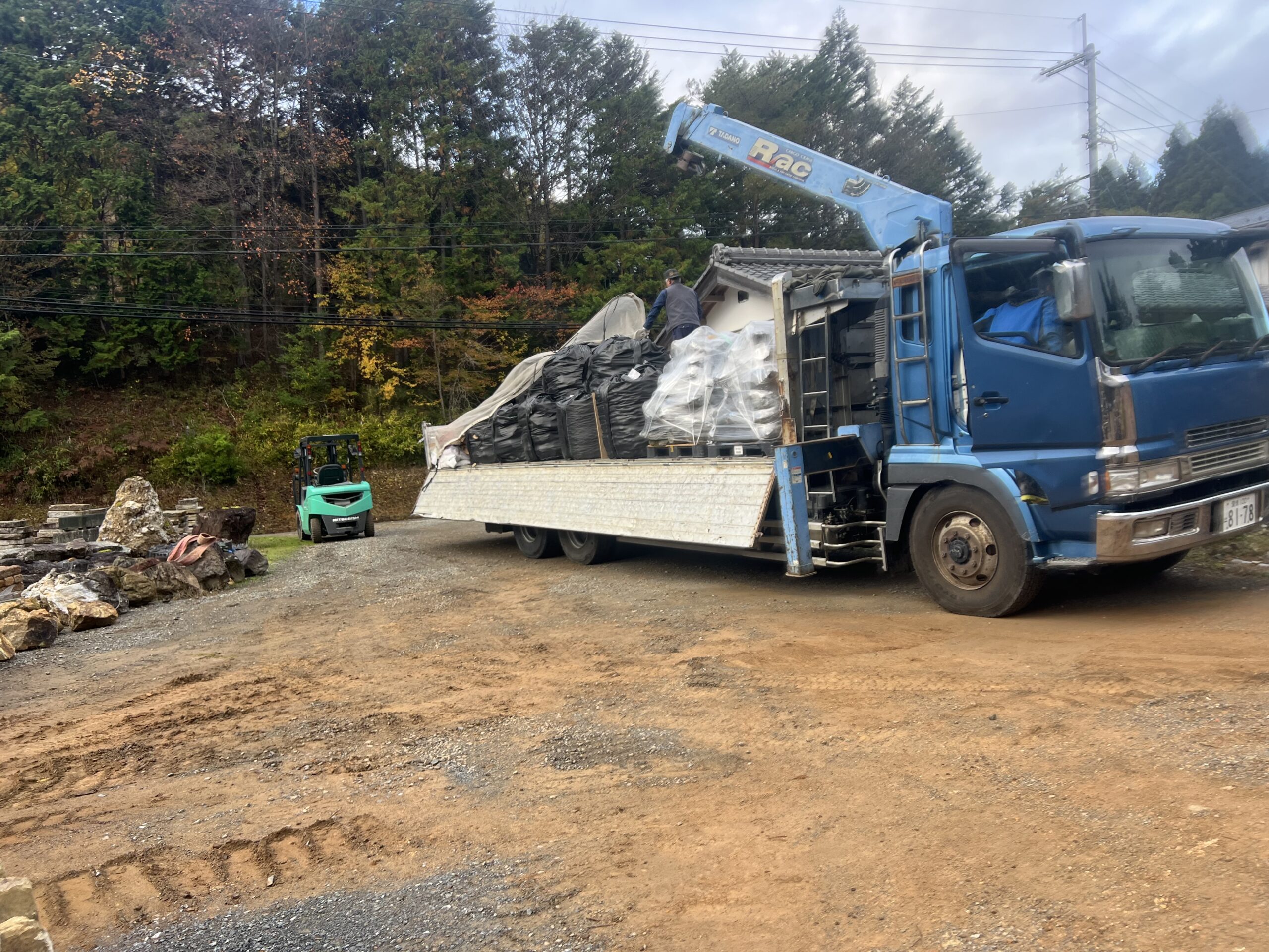 仕入れた石材が 今月は80tほど 運ばれてきます。まだ愛知で仕入れた古材の石造品が 届きませんが。