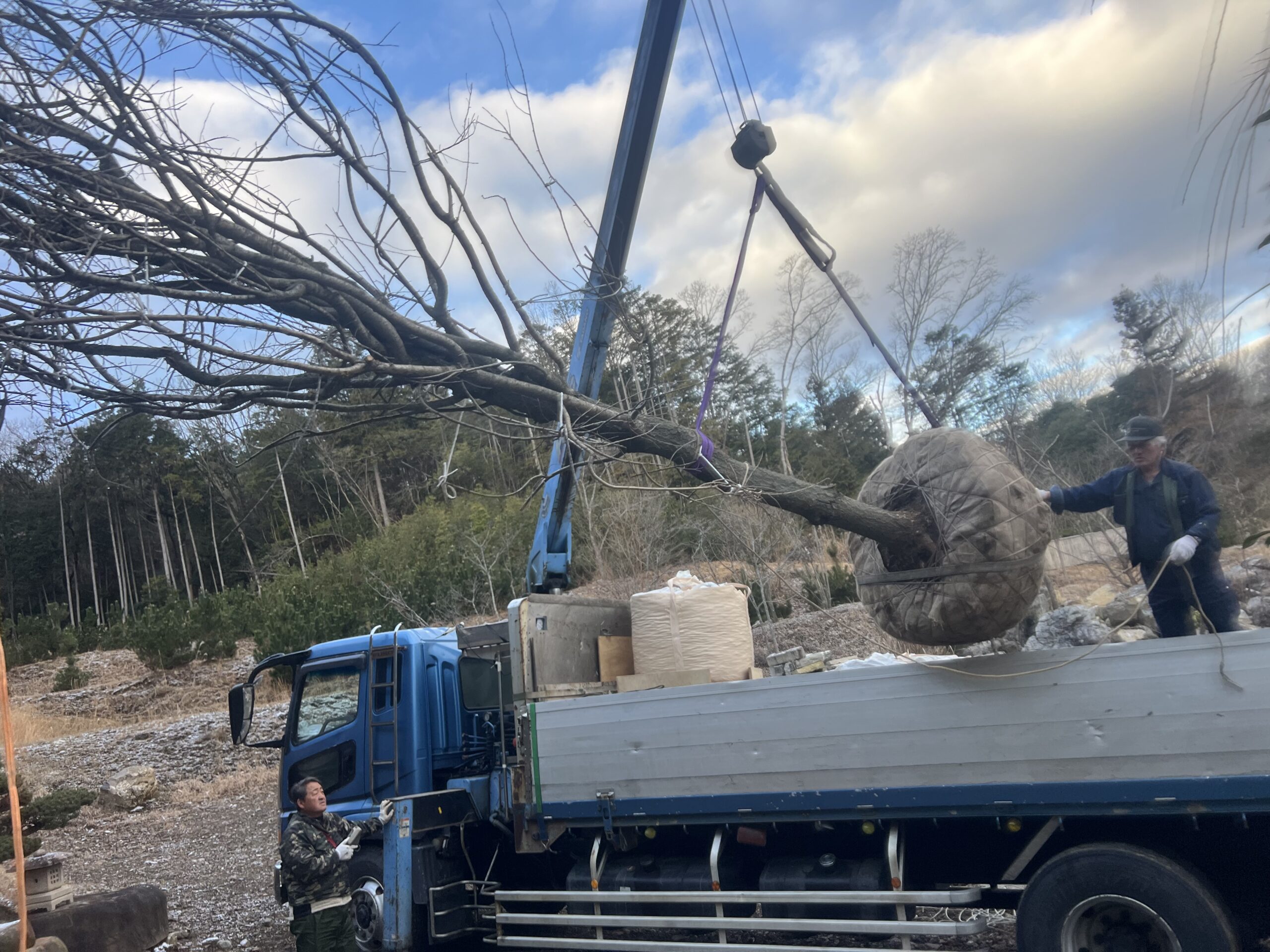 仙台枝垂れ桜 大木落札して 今朝10t車で 運んでもらいました。