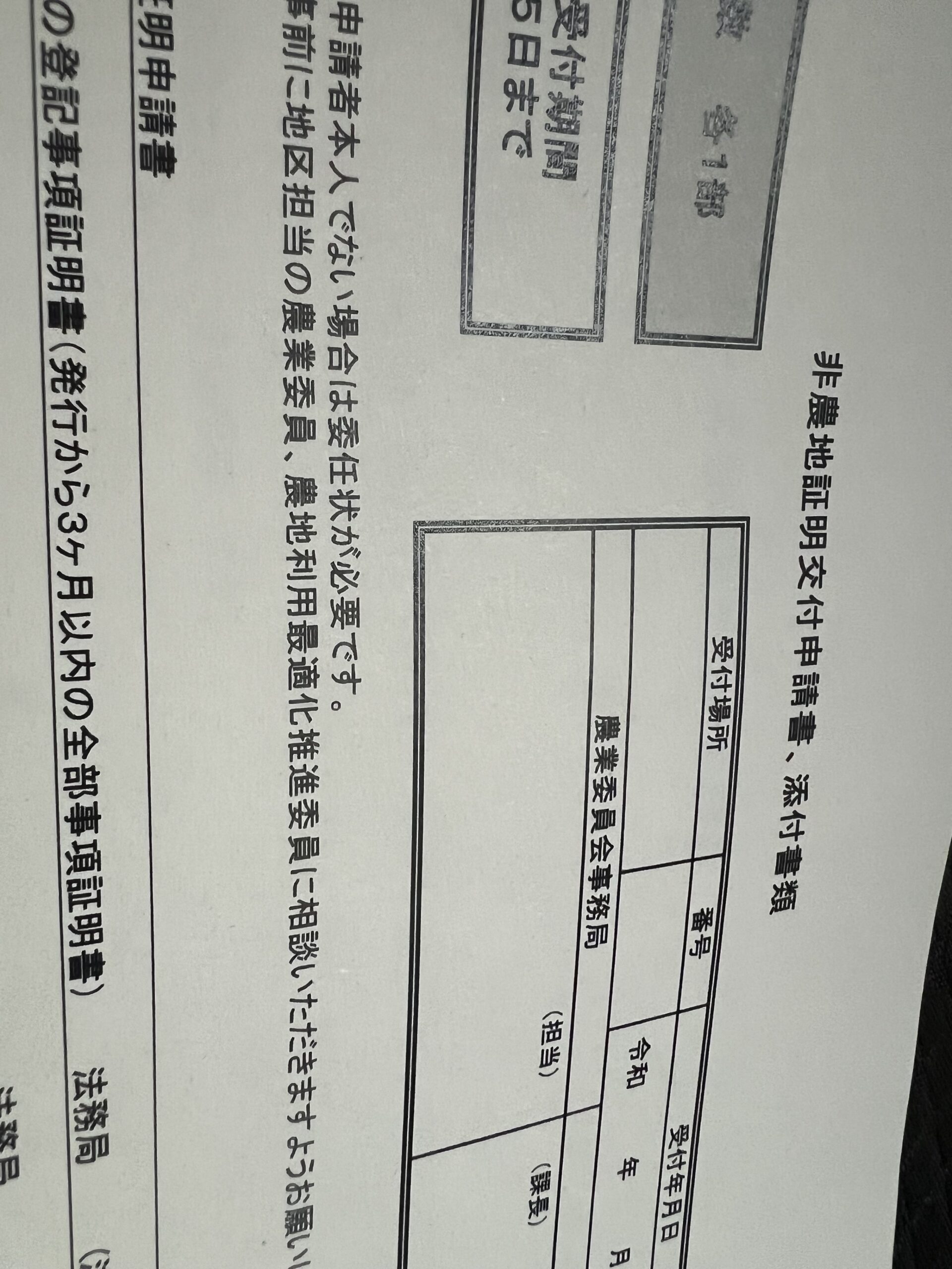 非農地証明受付申請書
