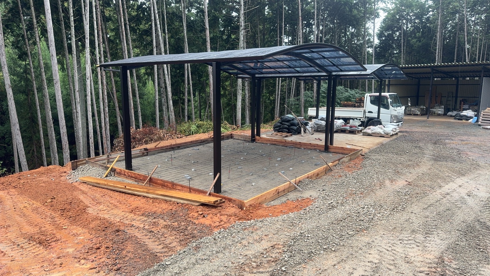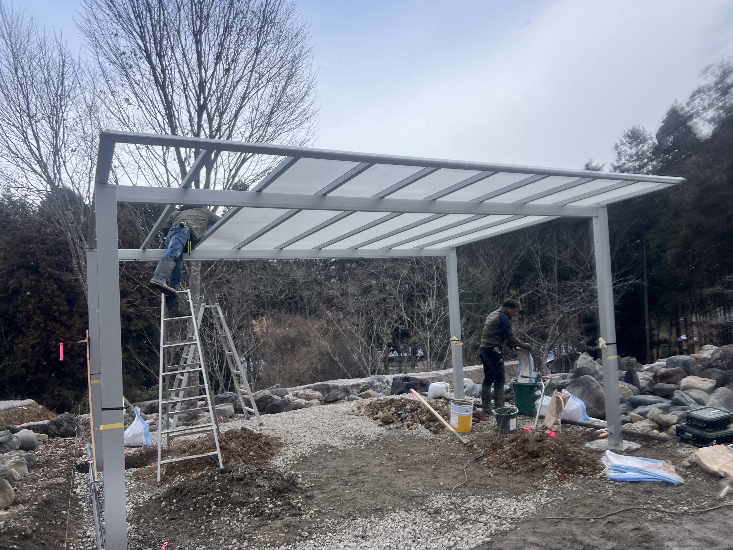 ★昨日 3台目のカーポートが立ちました。あとは土間の生コン打ち