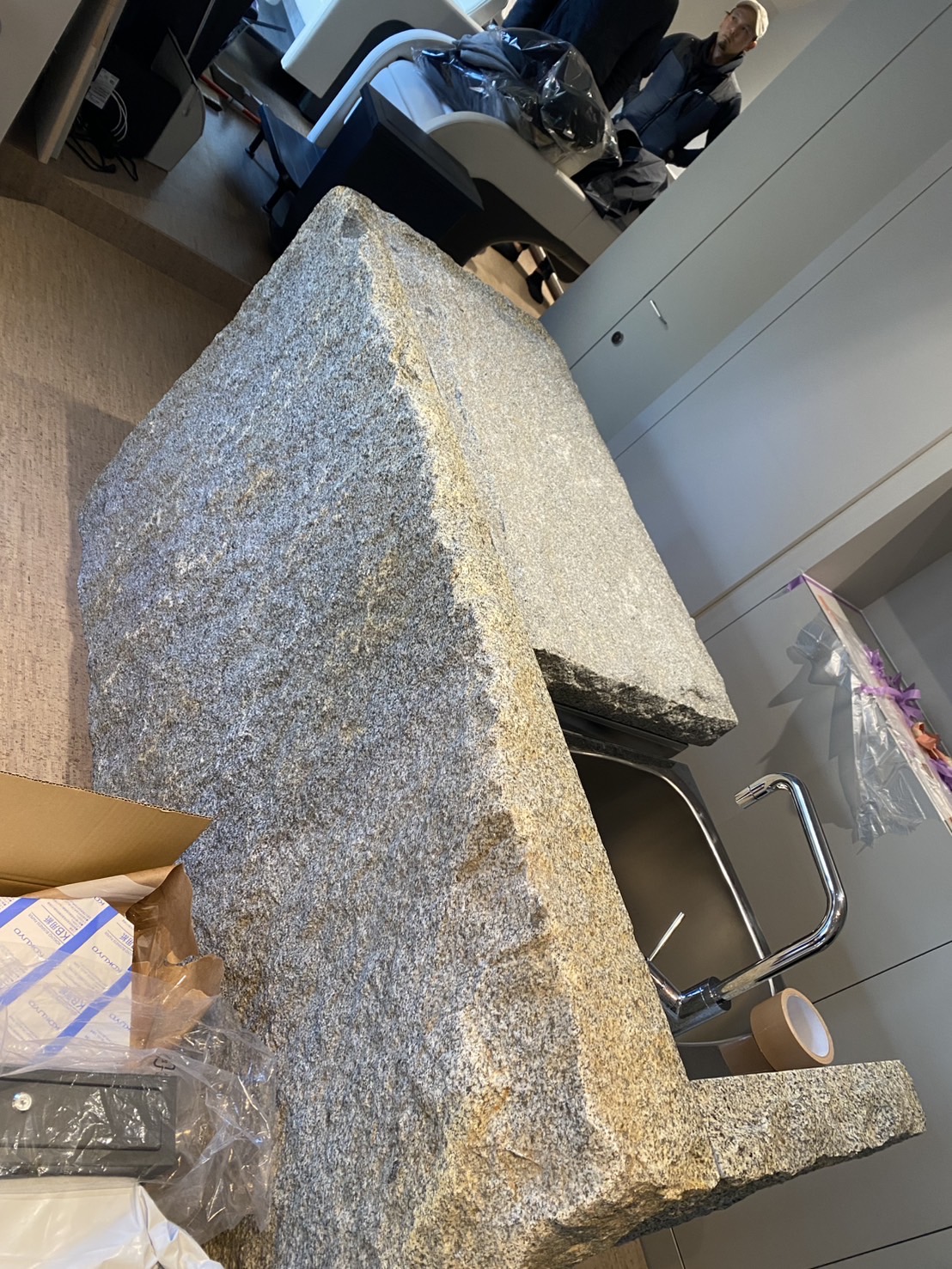 先日の店舗の腰張り カウンターの石を乗せました。