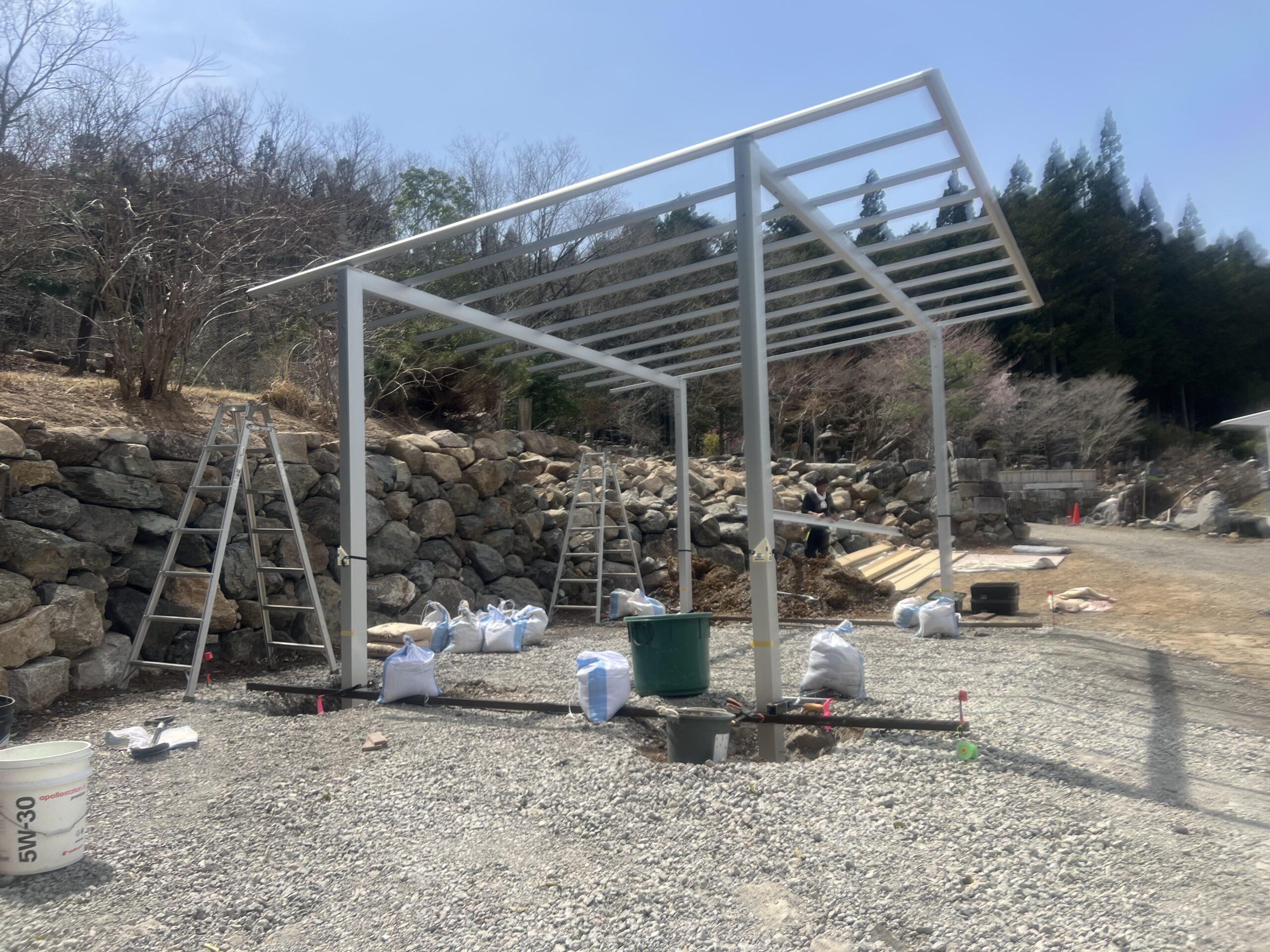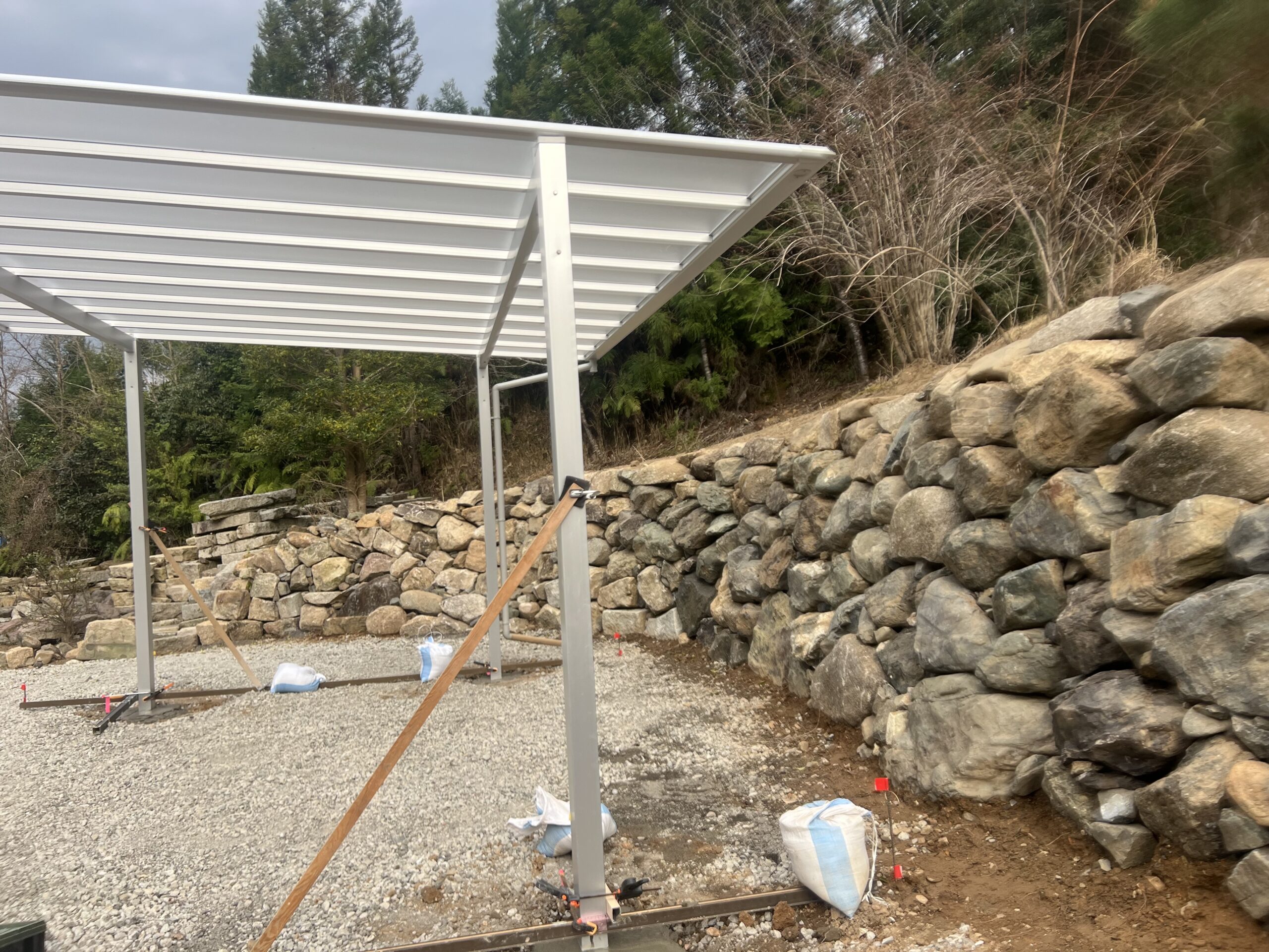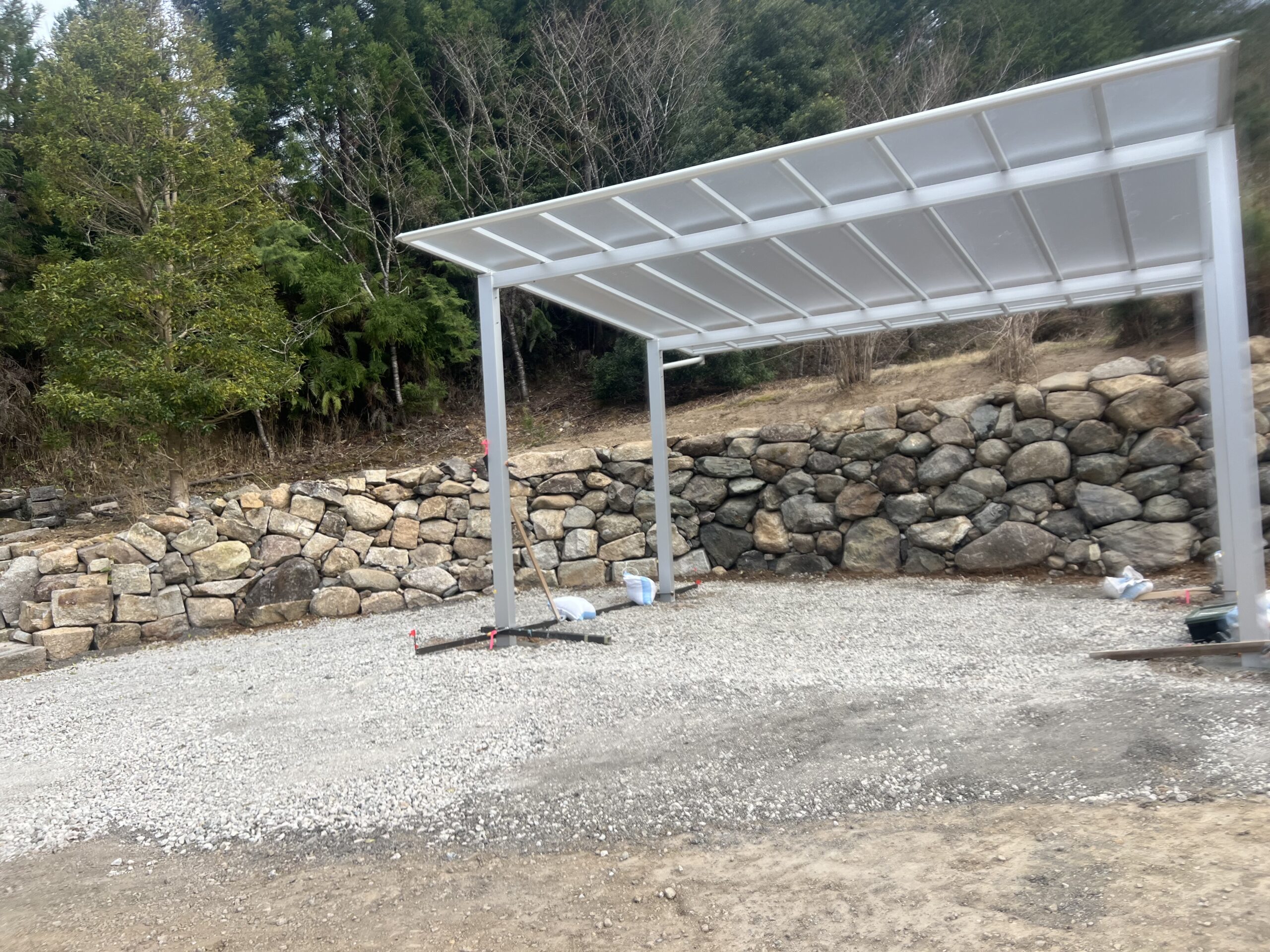 4台目のカーポート 昨日建てあがって あとはコンクリート土間打ちですが ちょっと先になります。