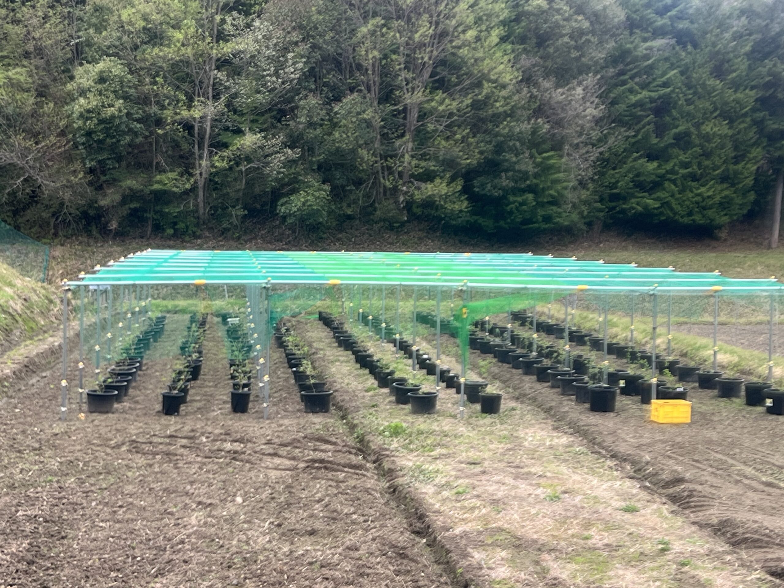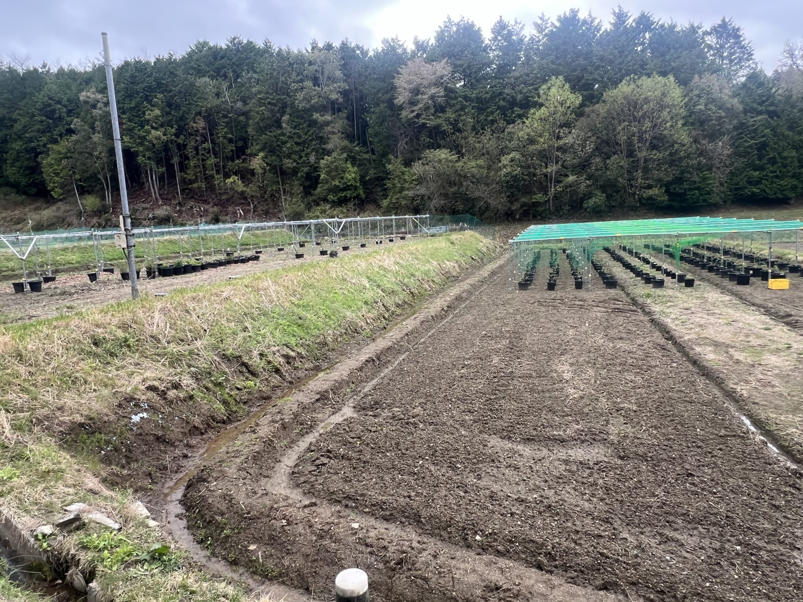 単管で鳥よけネットと キウイの棚が完成しました。収穫は来年からになります。