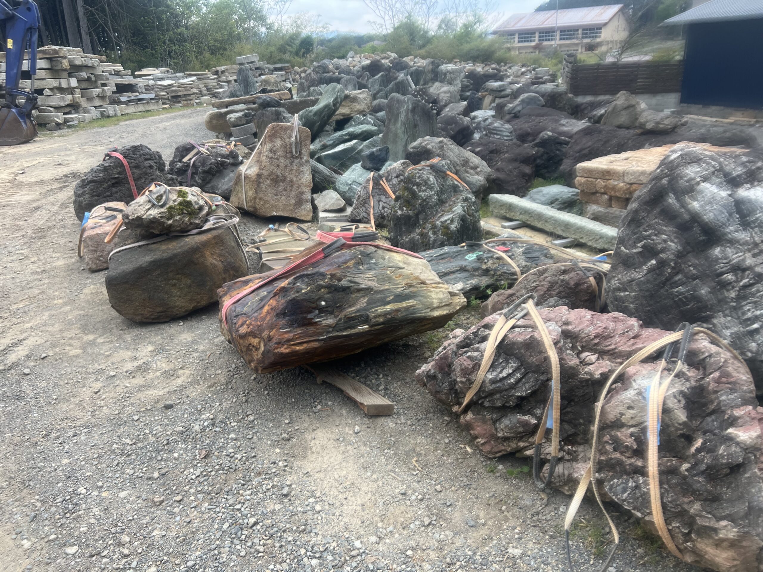 昨日は5人で庭石の整理と 先週に古民家を買われた外国の方の庭に置く庭石と石材を配達しました、リピーターさんで何度も来られています。