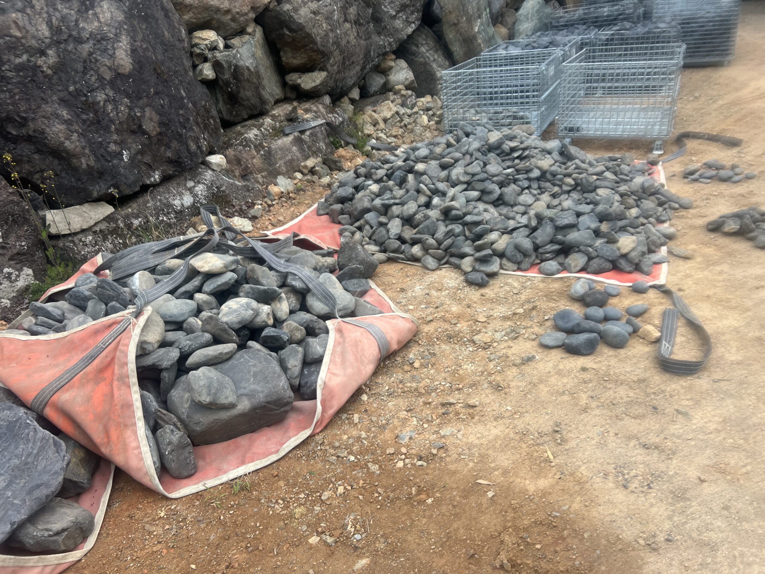先日 入った石コロ達 モッコで持って帰りましたが ボチボチ 鉄カゴに選別して入れ直します。