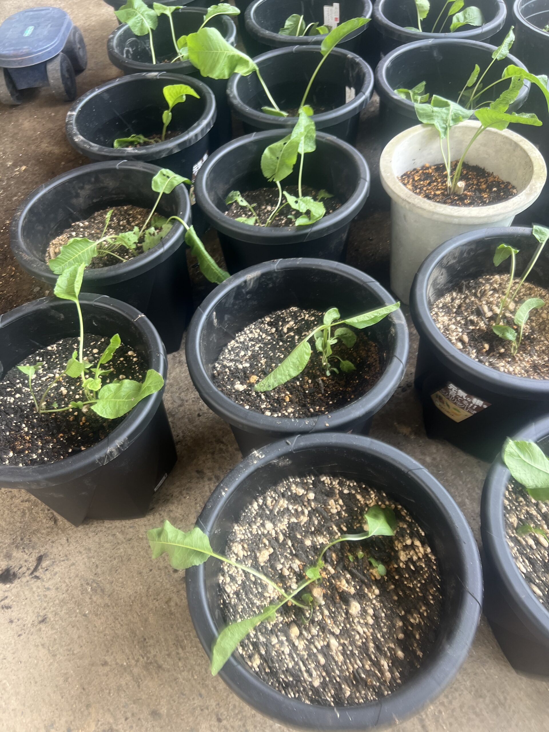 ワサビの辛さが恋しくて 3月に ホースラデイシュ【山ワサビ】根を買って 輪切りにして 水の中に漬けて置いたら2.3日で 発根しました。