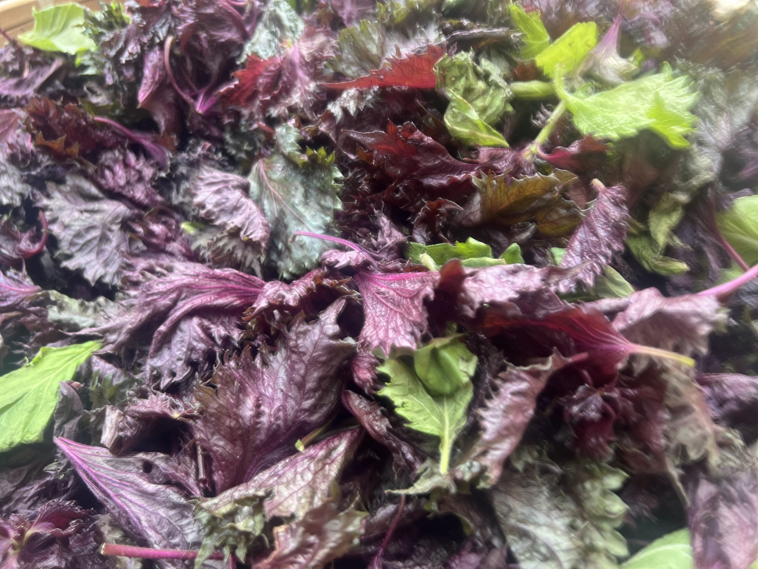 昨日あんまり天気が良かったので天日で干して 紫蘇の葉 乾燥させて 焼き塩と一緒にミルで粉末にして【ふりかけ】にします。