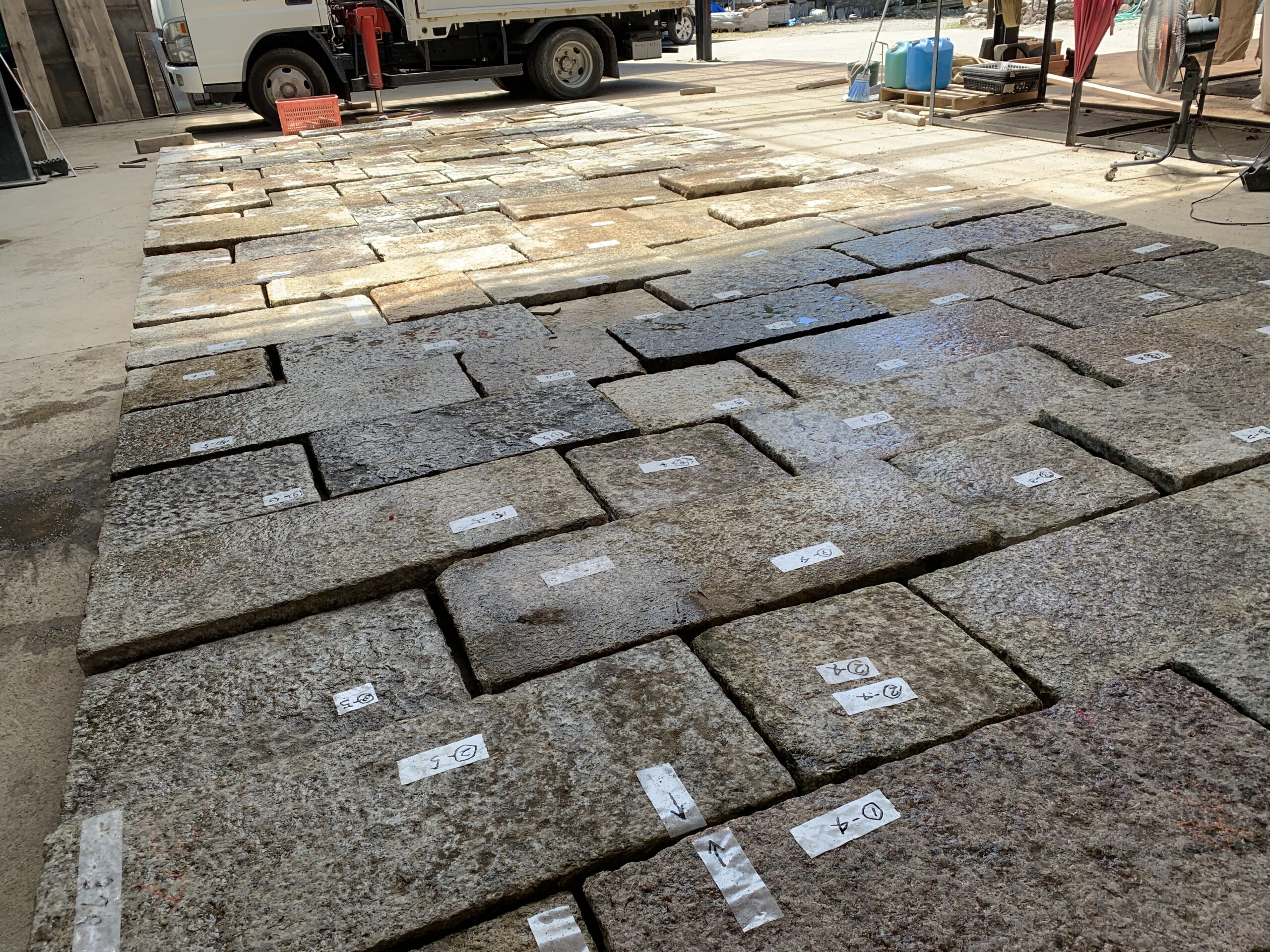 ★★今日は 引き取りの来られる石材の集積をします。