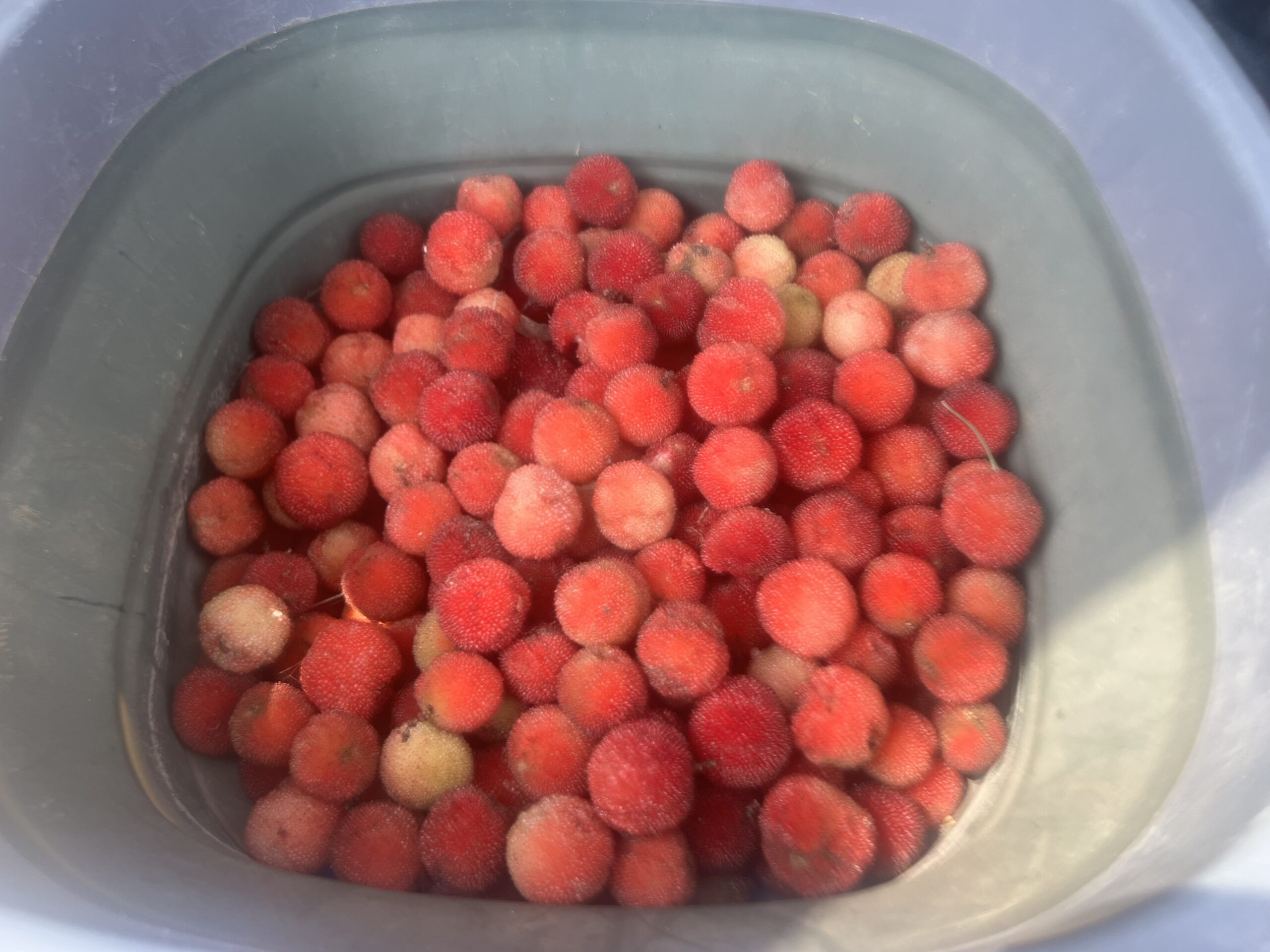 所有している畑に 昔に植えたヤマモモ【モリグチ】が毎年 真っ赤な実を付けます。