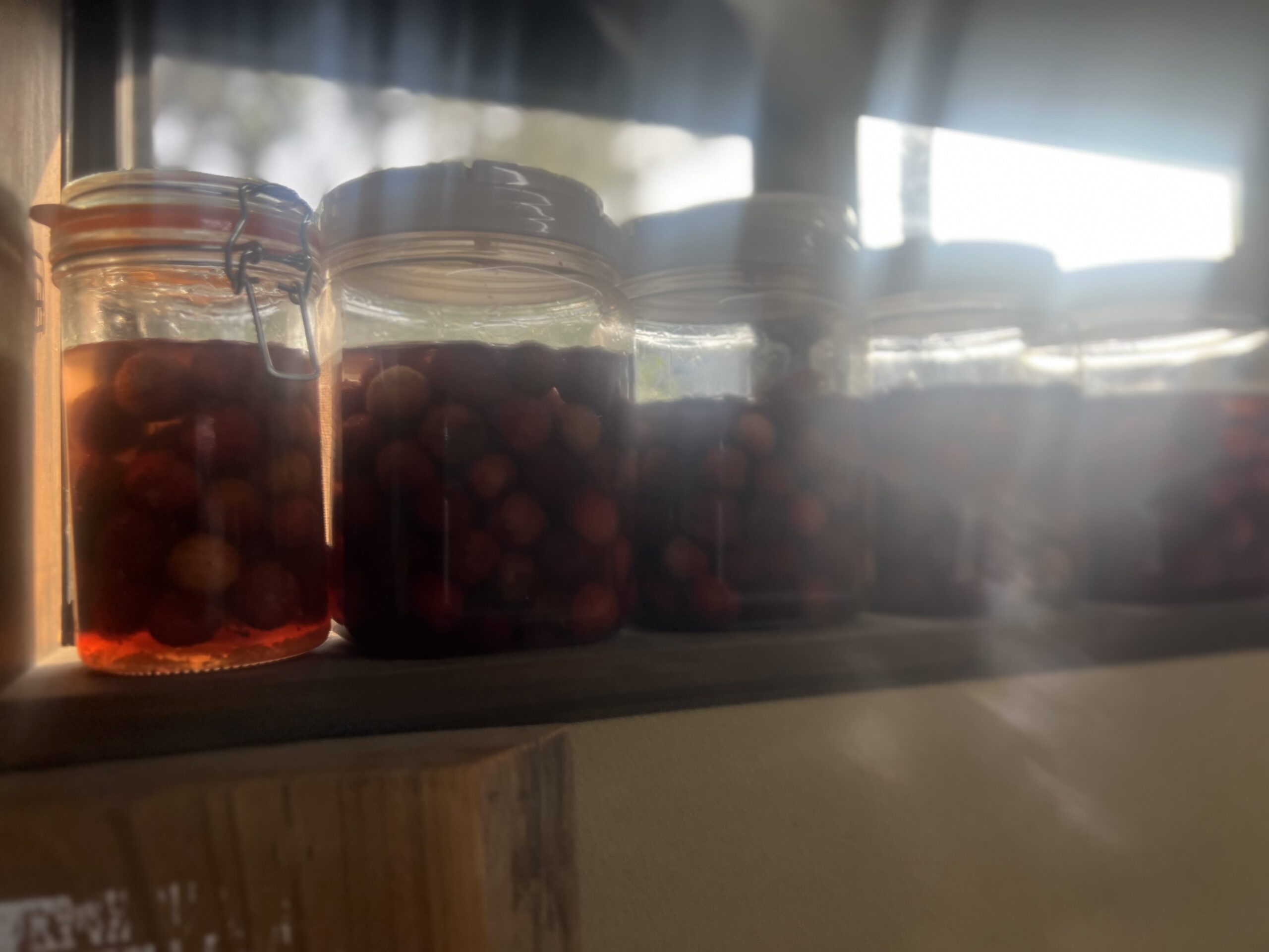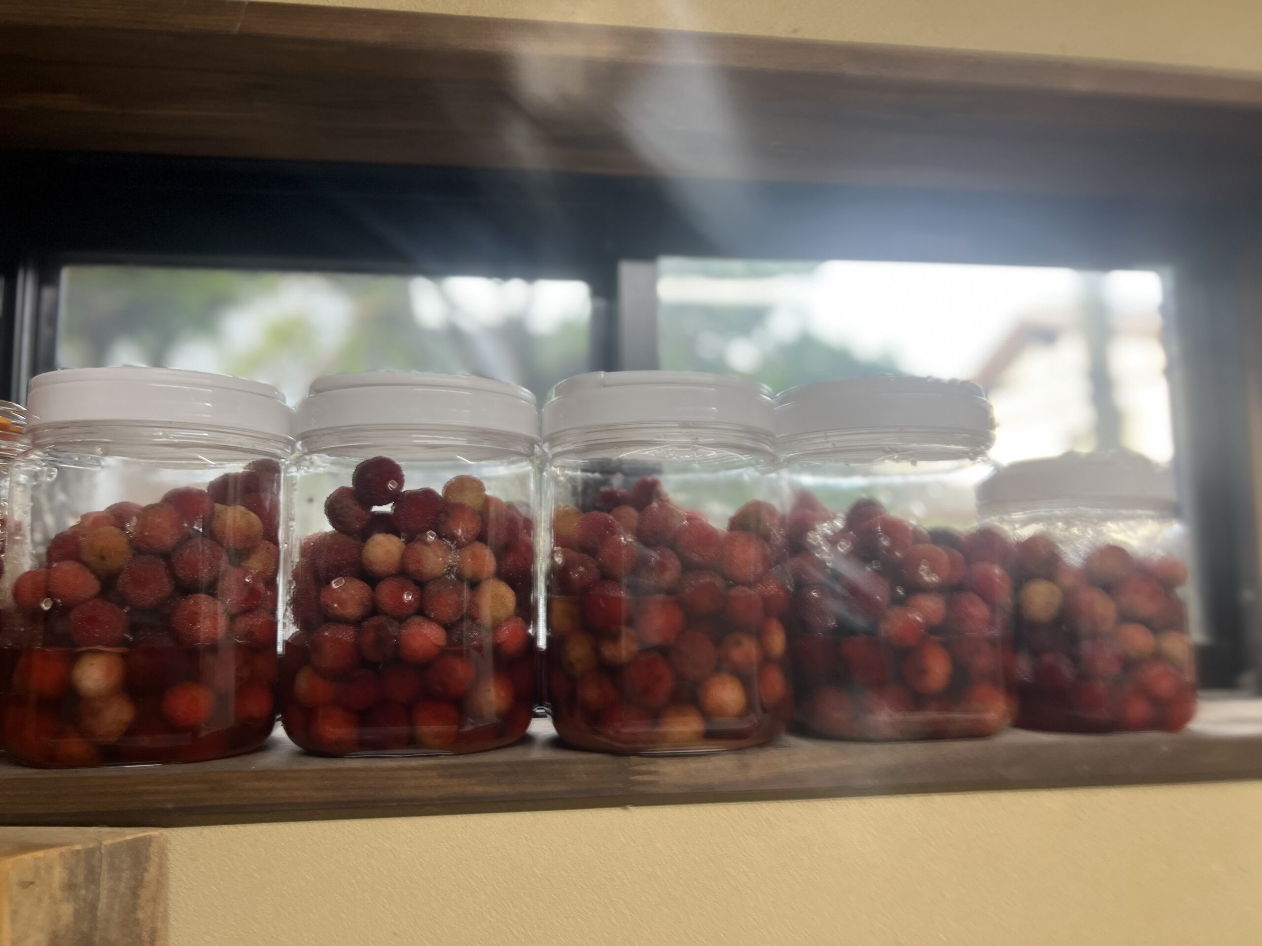 水洗いして ザラメとリキュール酒で 漬け込んでます。
