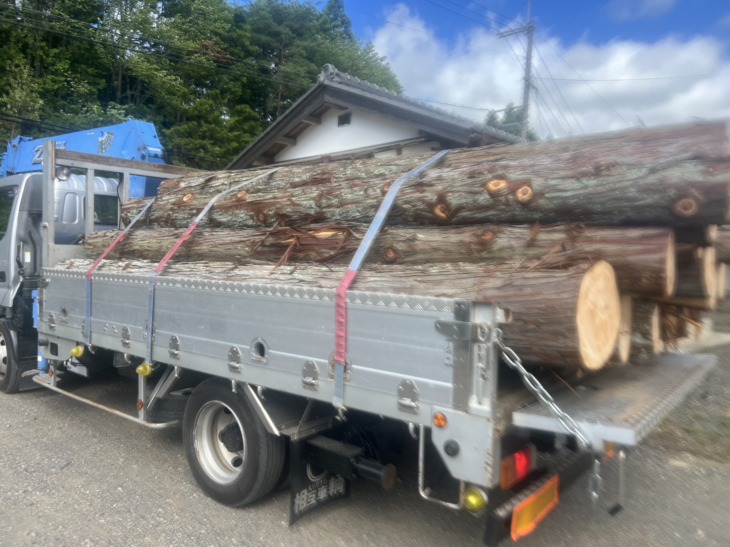 間伐した檜を昨日 材木市場に運びました。