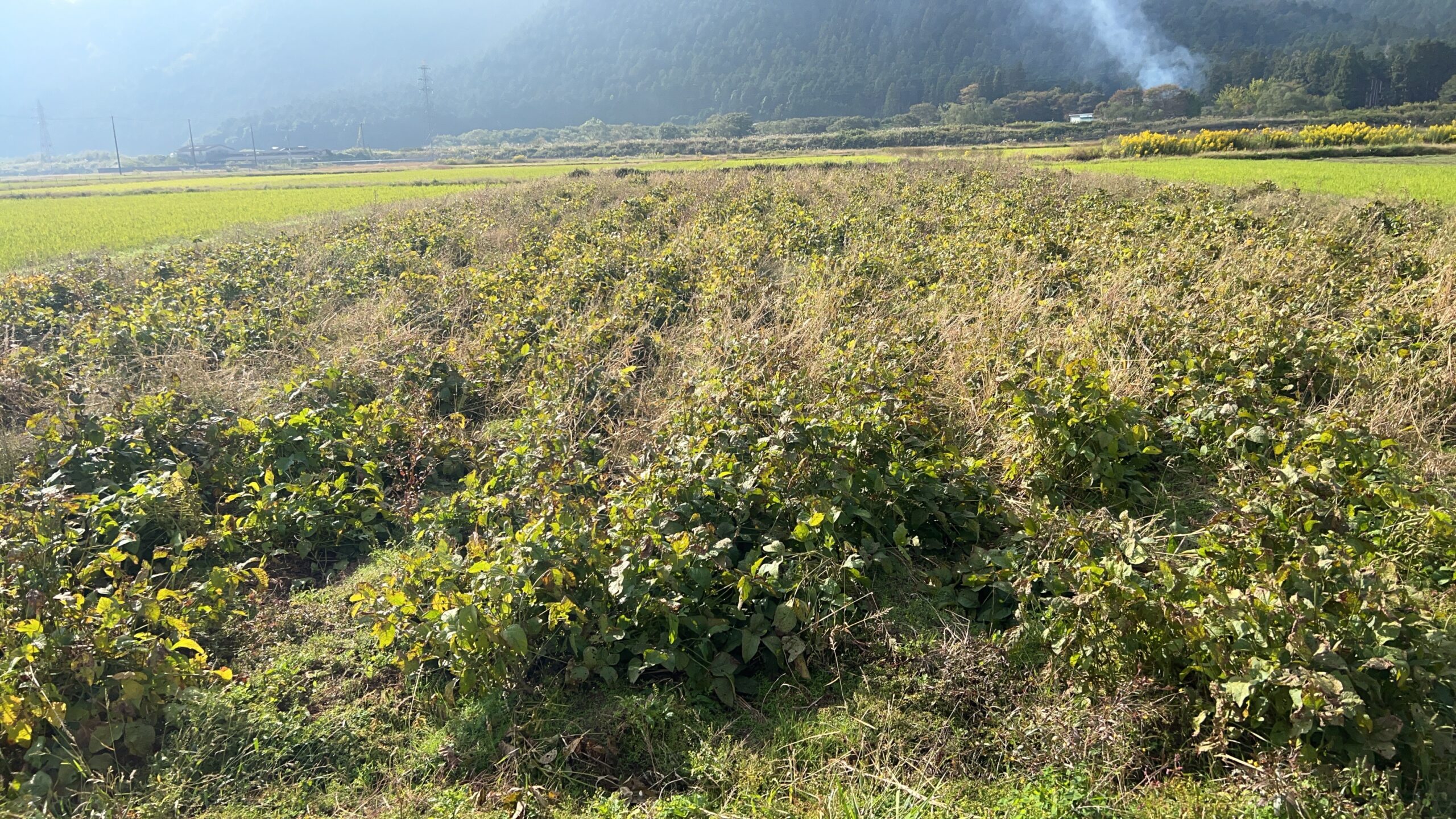 今年も 丹波の黒豆 作ってもらっています。下の写真は 去年の黒豆畑です。300坪あります。4年前は600坪でしたが採り切れずに 残りは鹿に 食べられてしまいました。