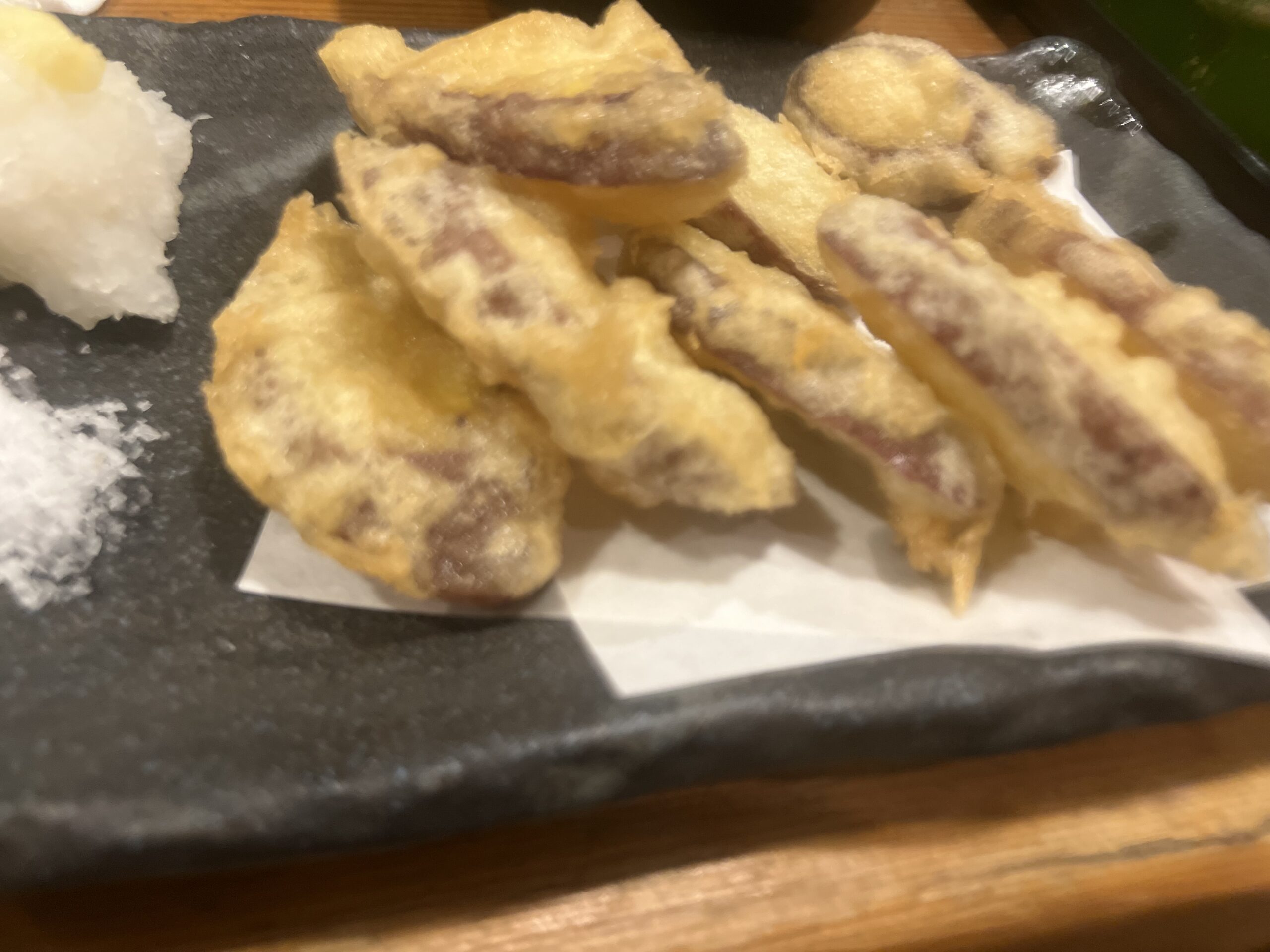 いつもの居酒屋で 紅ハルカの天婦羅と 塩バター焼き いただいてます。去年の秋収穫した紅ハルカですが 保存の仕方教えて 欲しいわ?