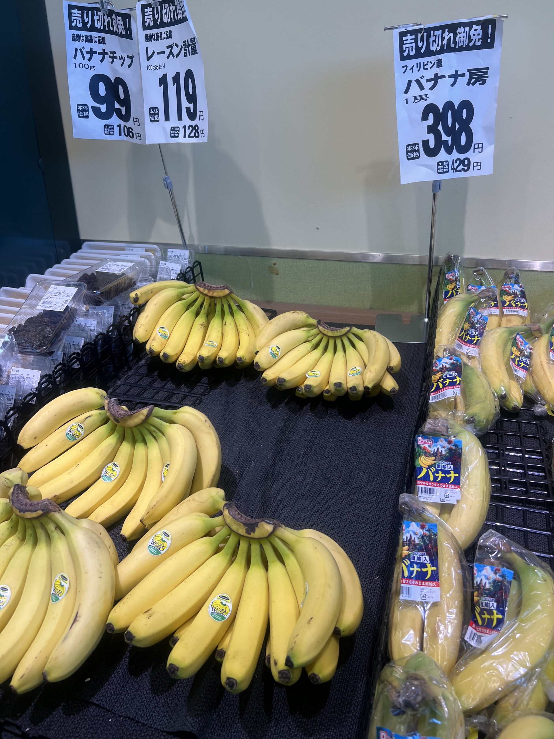 100円のたこ焼きとバナナ1房398円