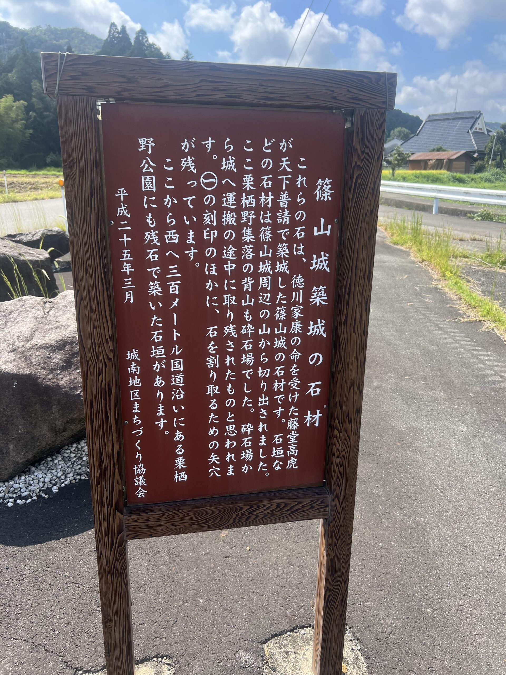 今日朝から 丹波の篠山に用事があり 篠山城の築城の際に使われなくなった石の看板を見つけました。