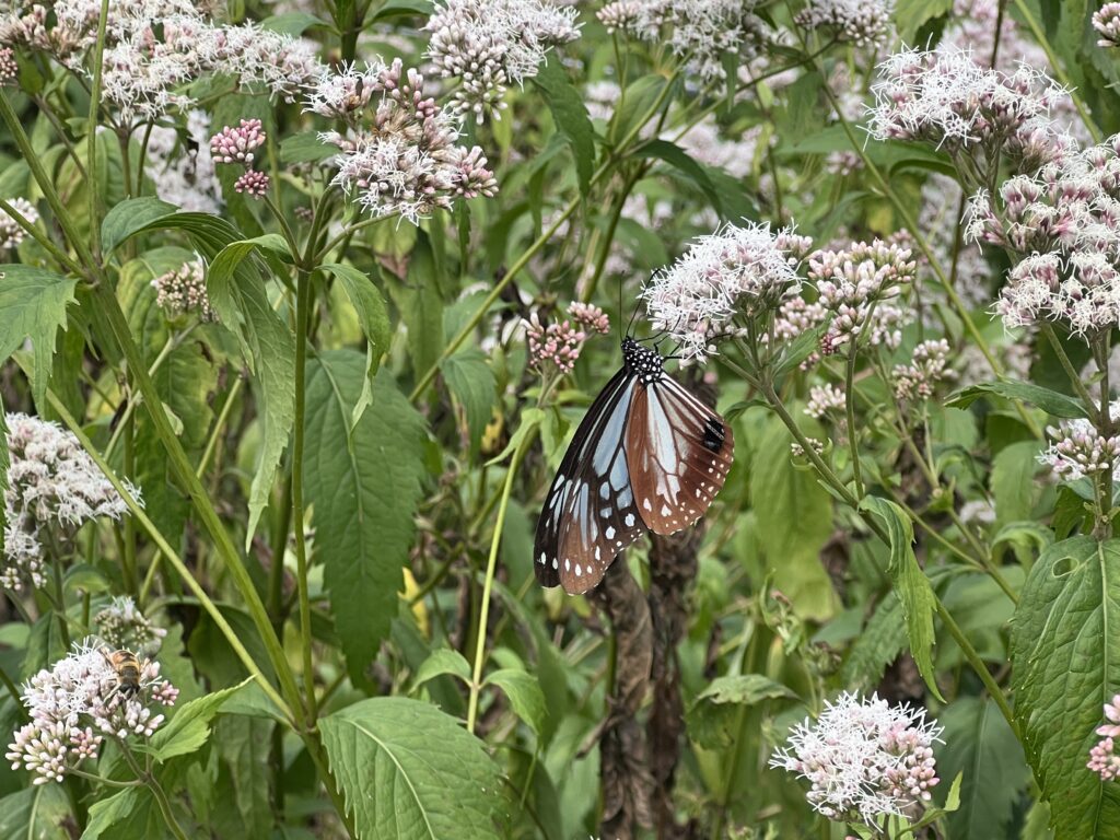 春に挿し木したり 株分けした 秋の七草のフジバカマが満開になり始めました。