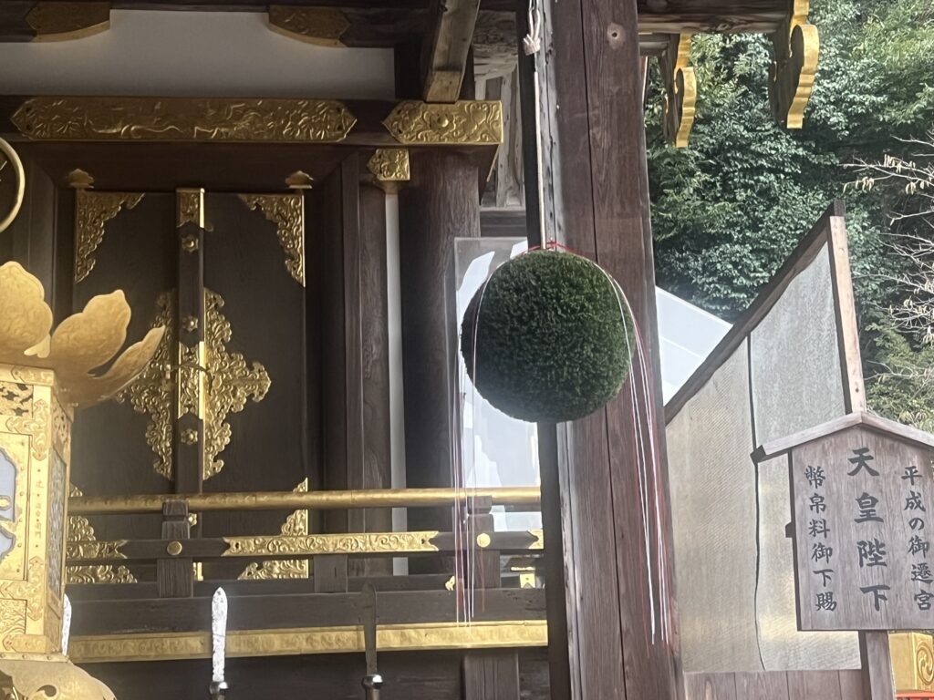 松尾大社の上卯祭に奉納する 杉玉 朝 無事 納められました。