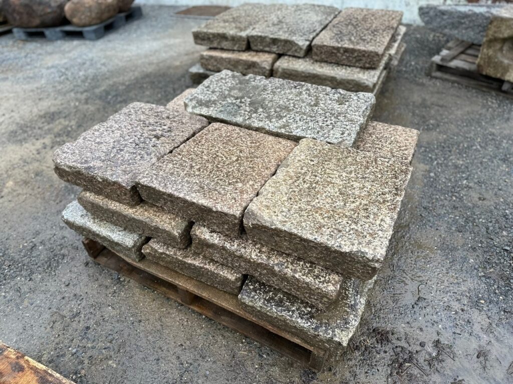 近日引き取りに来られる 板石 200枚 スリング掛けて準備しています。