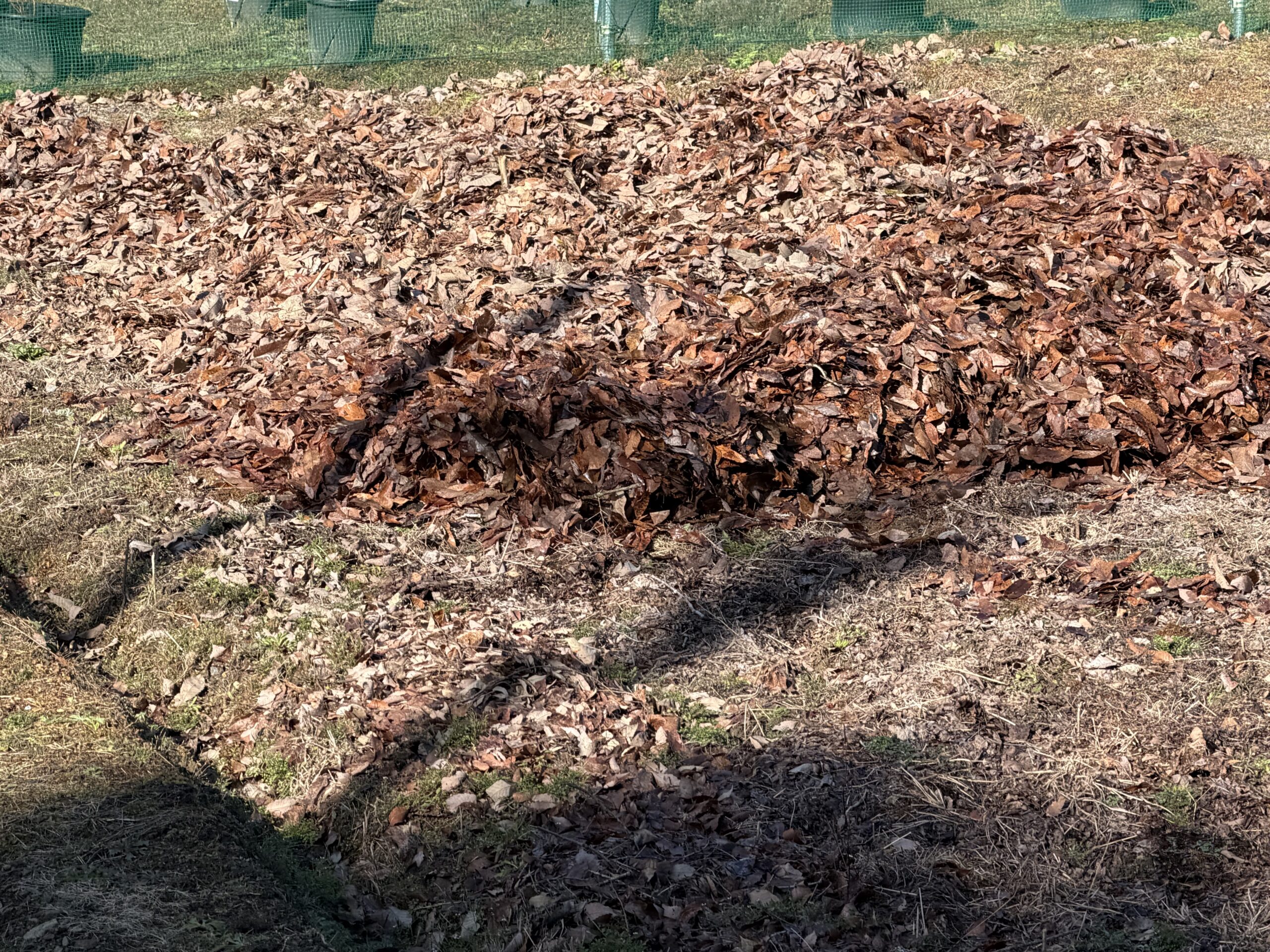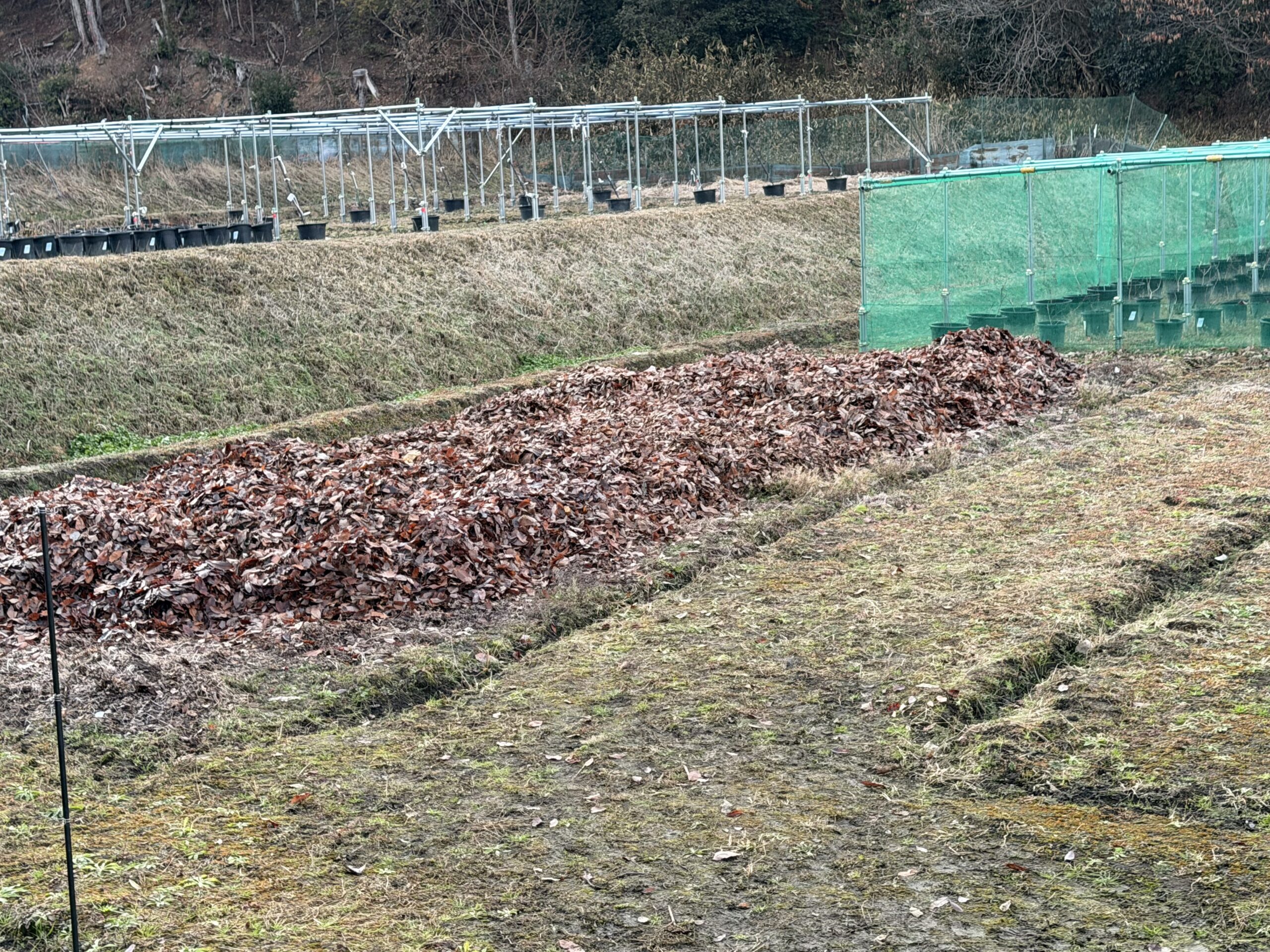 展示場の奥に コナラの林が500坪ほどあり 新芽と紅葉の時期は綺麗ですが この時期 落葉が大量に落ちています。昨日から4人で 落葉を集めて