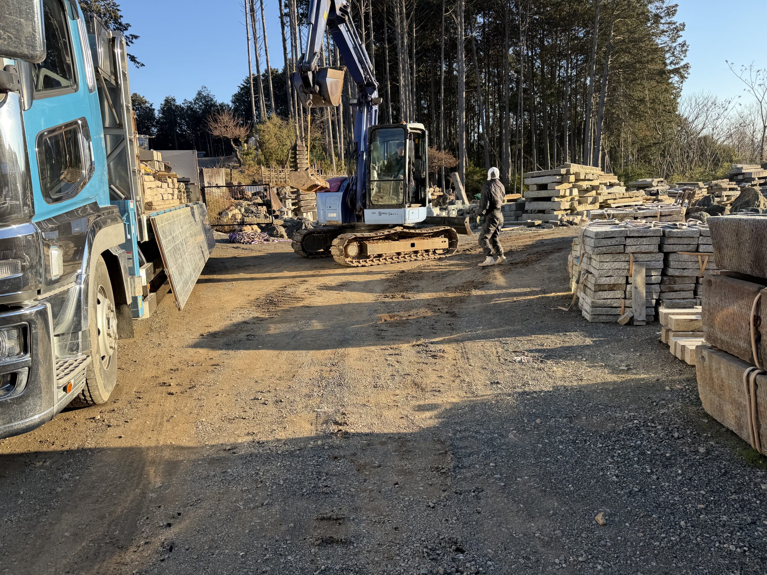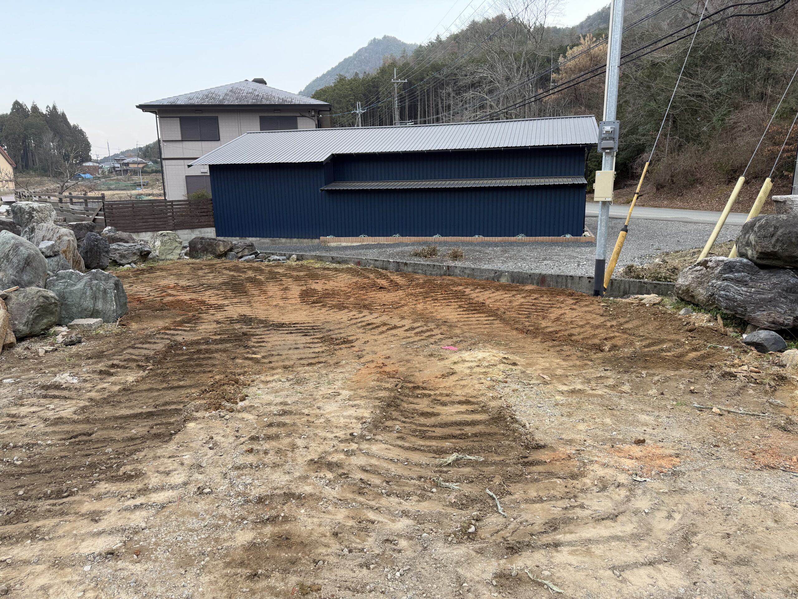 ★庭石片付けて 整地までしました。あとは基礎に生コン打ってから。