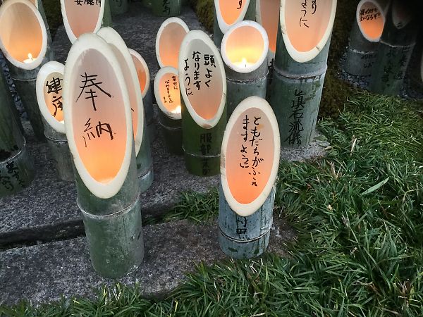 竹蝋燭の中に 子供たちが願いを書きます。延朗上人の800年の大遠忌法要から 22年続けています。