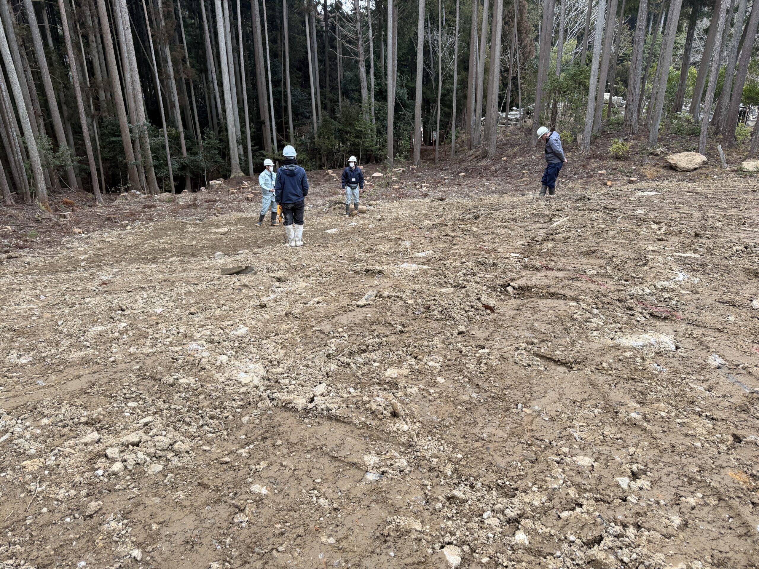 展示場の一番奥で 治山ダムか11月に着工してやっと完成して 弊社の所有する土地を工事のために使っていたため 工事前の状態に戻すための立合いが ありました。