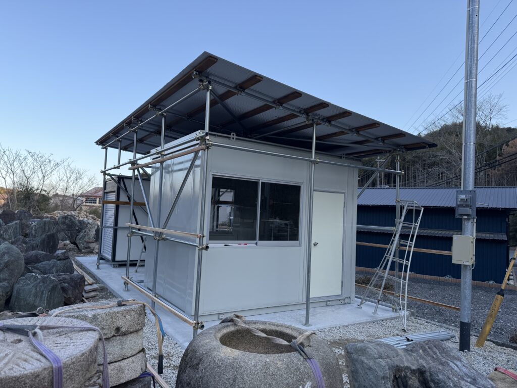 ようやく 出荷場のコンテナハウスの屋根が完成しました。