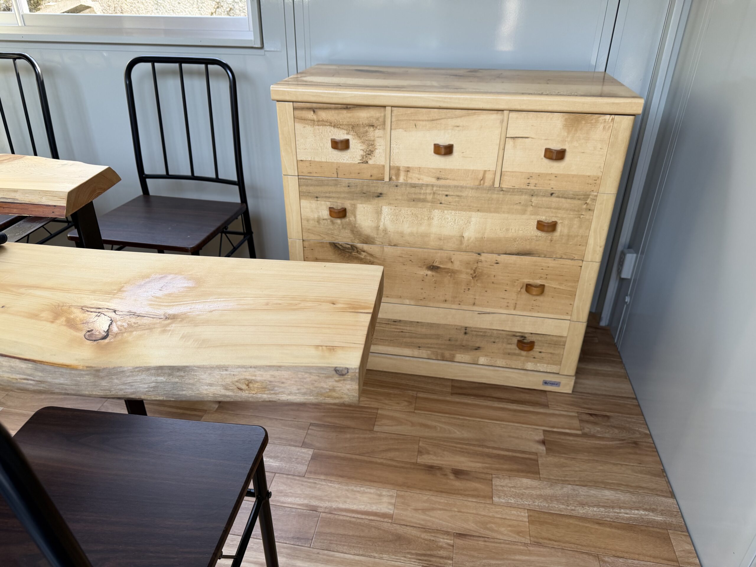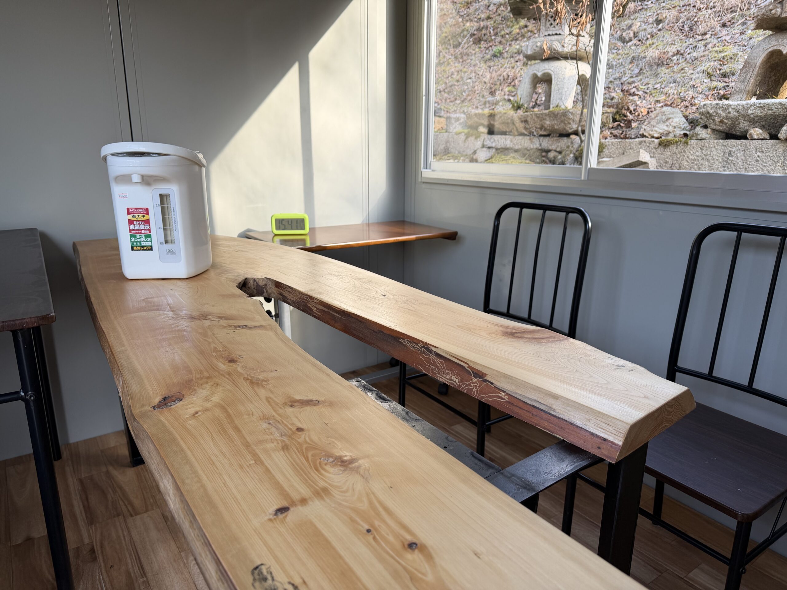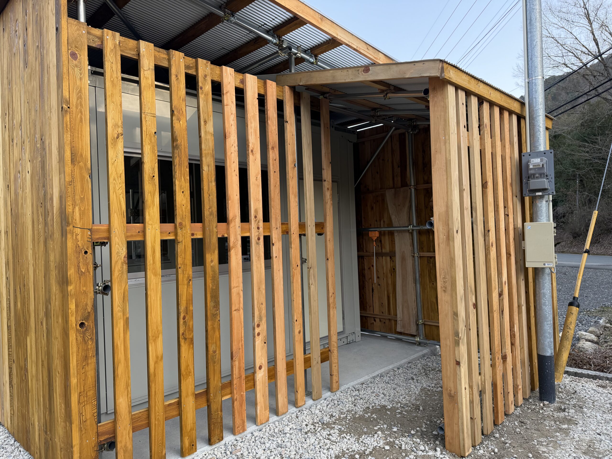 出荷場の休憩所 やっと完成しました。檜の板をプレハブの外の貼りました。