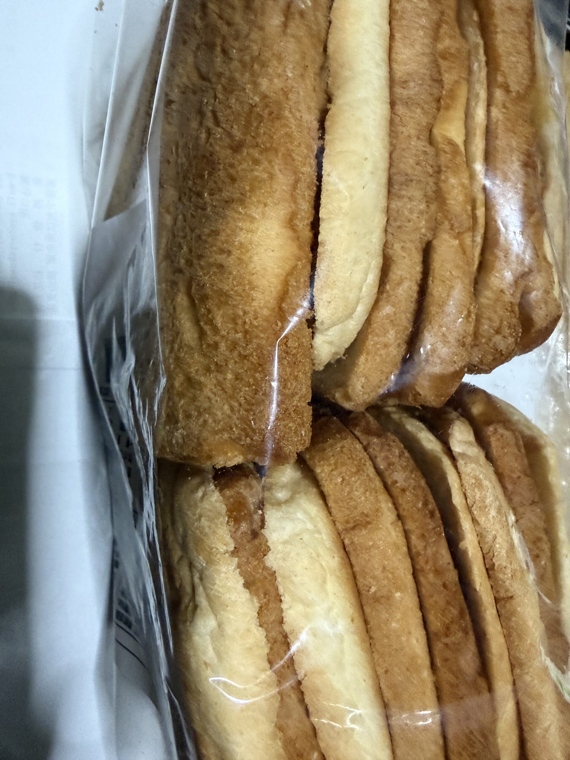帰りに近くの ラムーでパンの耳 買いました。いっぱいいっぱい 入って税込み98円 冷凍庫で保存してます。