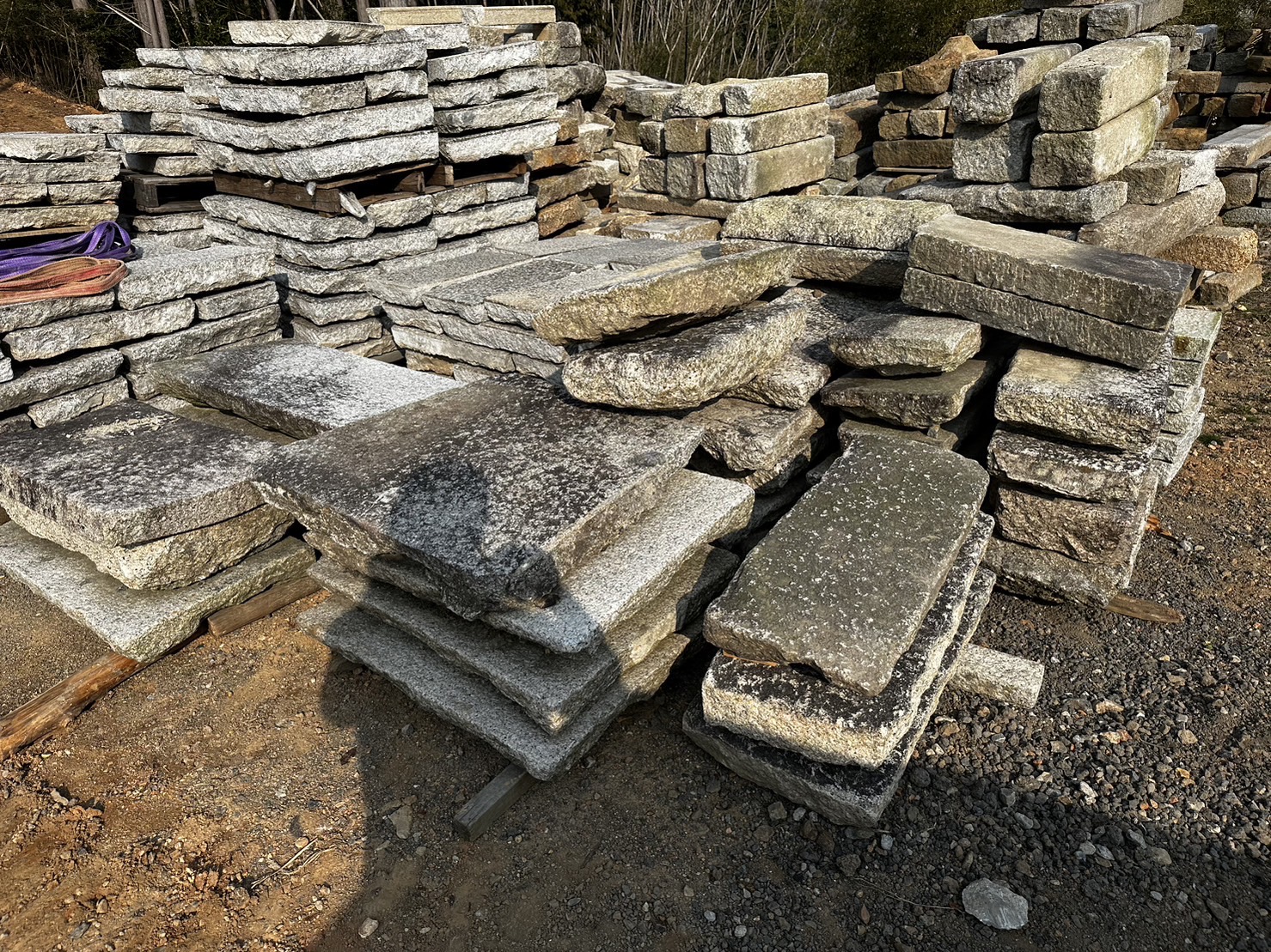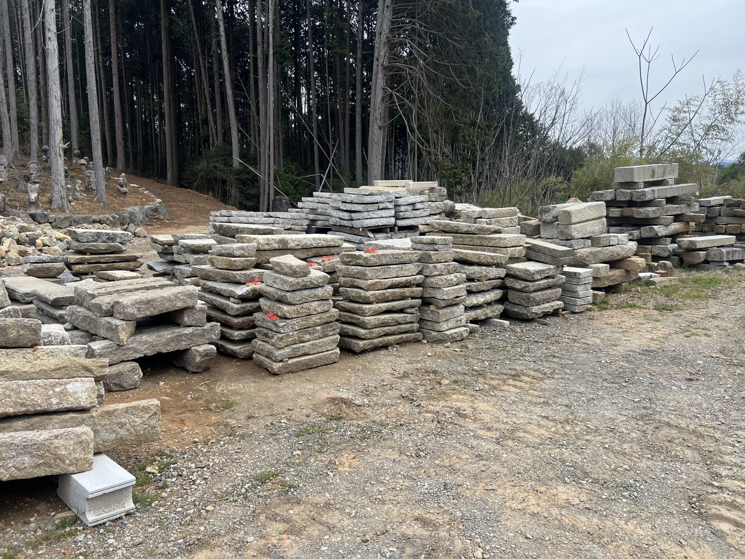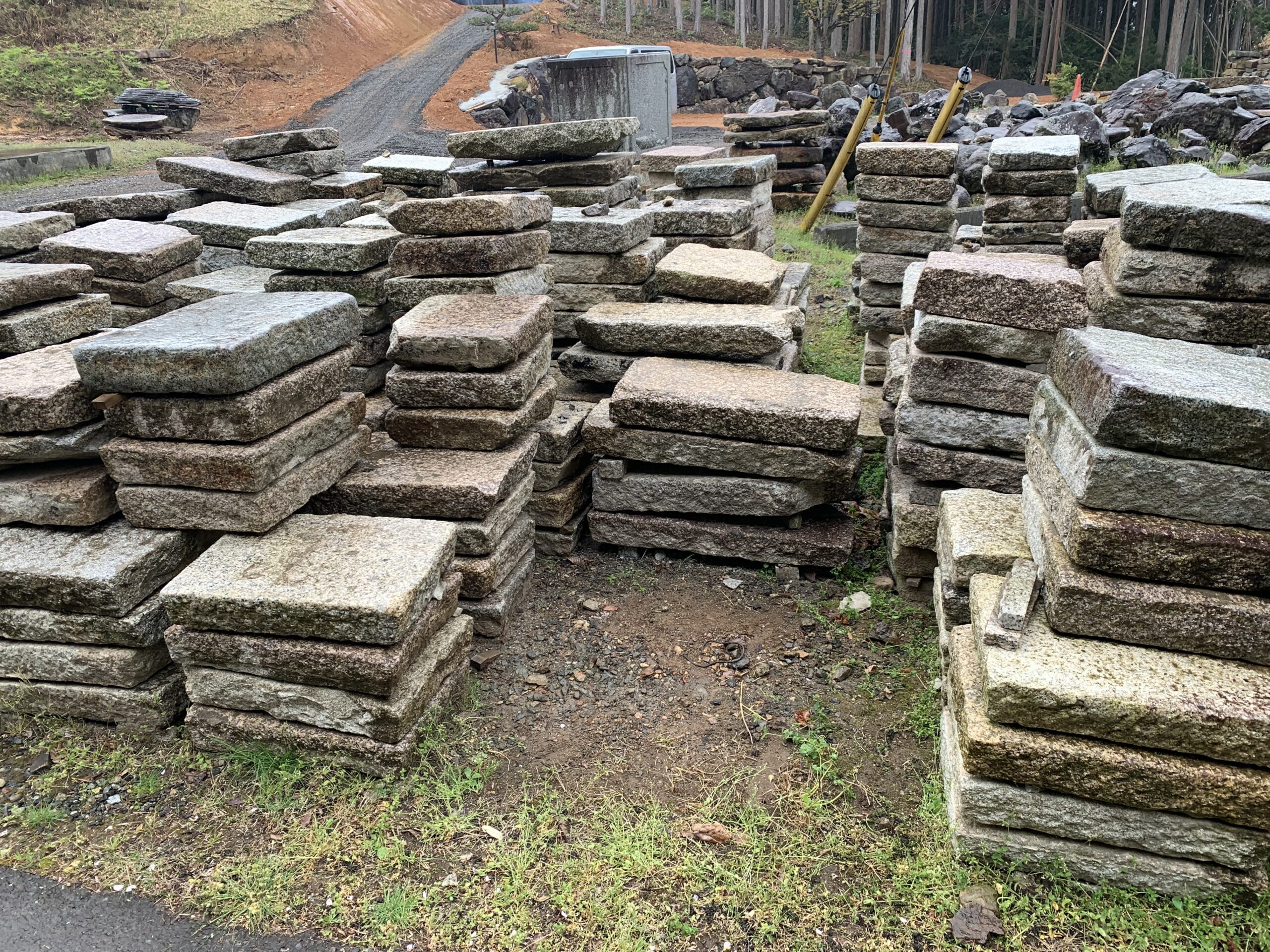 古材の丹波鞍馬の飛石も 平置きにしてます。お客さんが来られて 1個ずつ選ばれます。